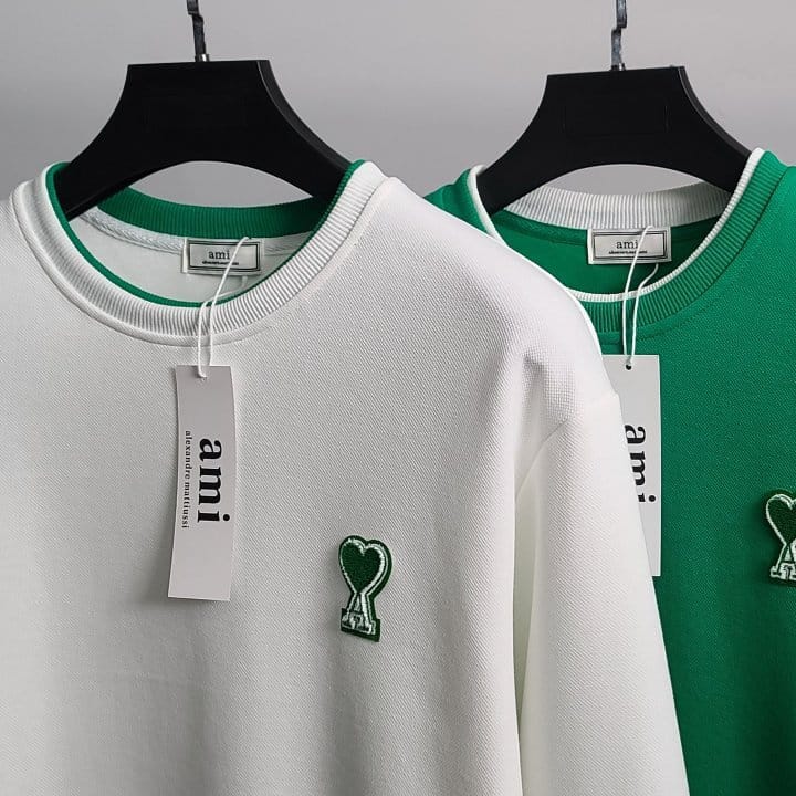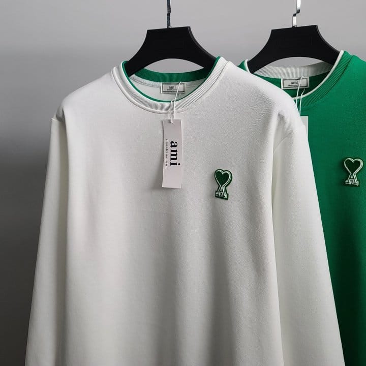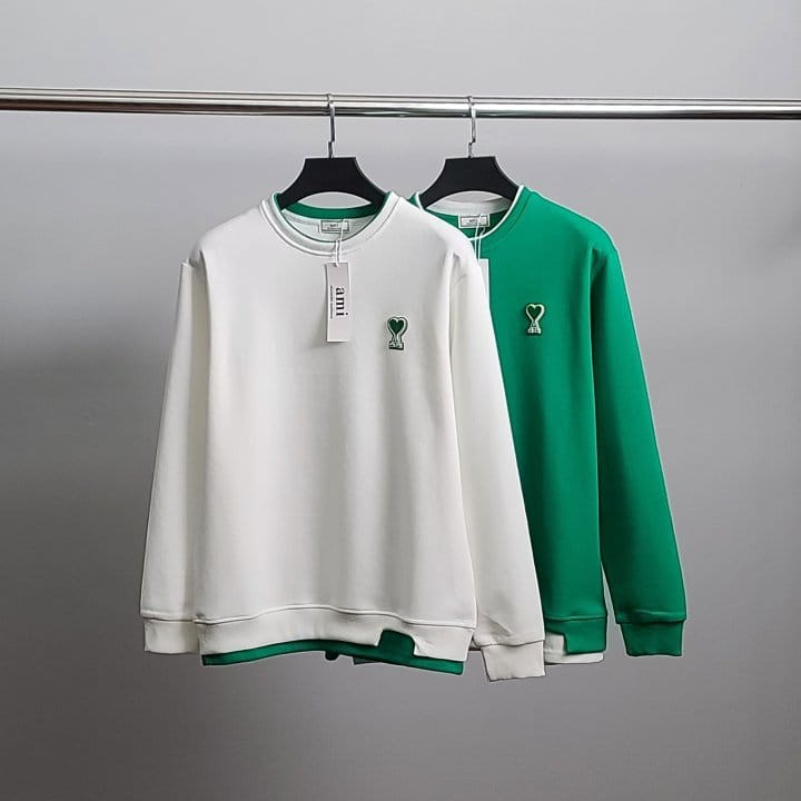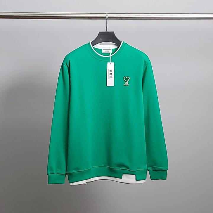 AMI 아미 그린하트 레이어드 맨투맨
