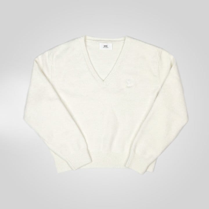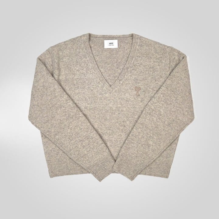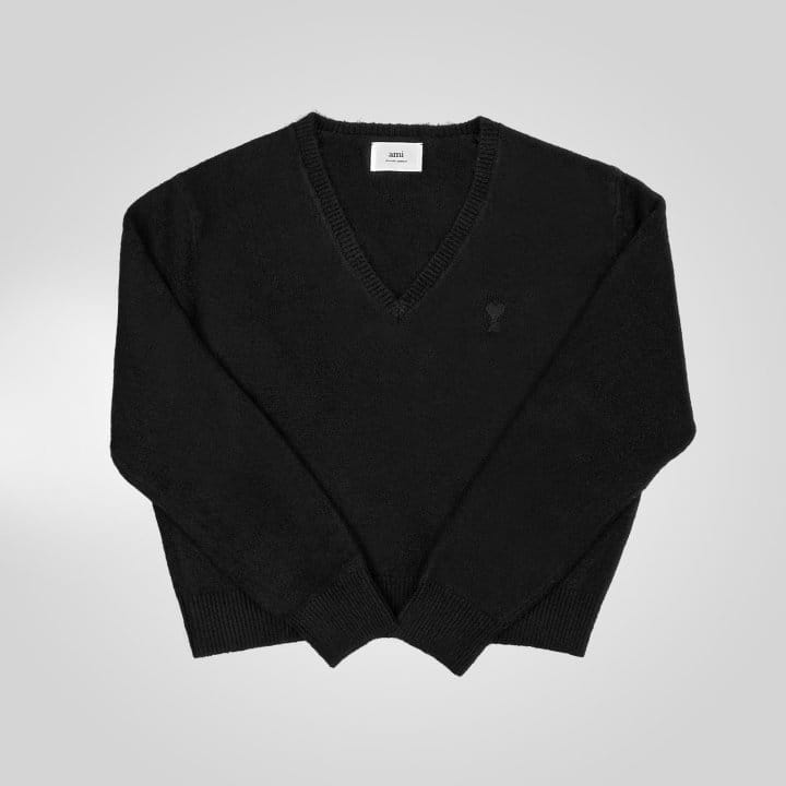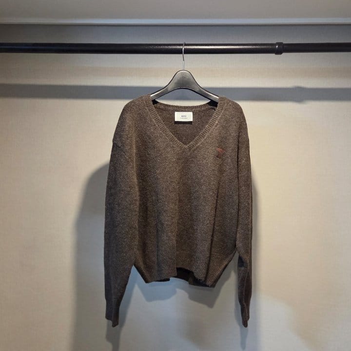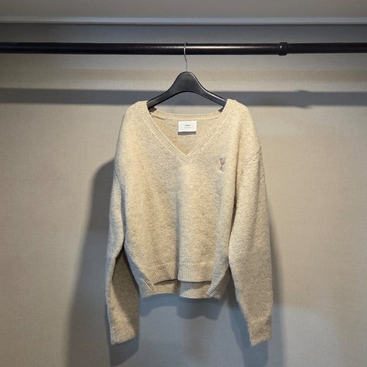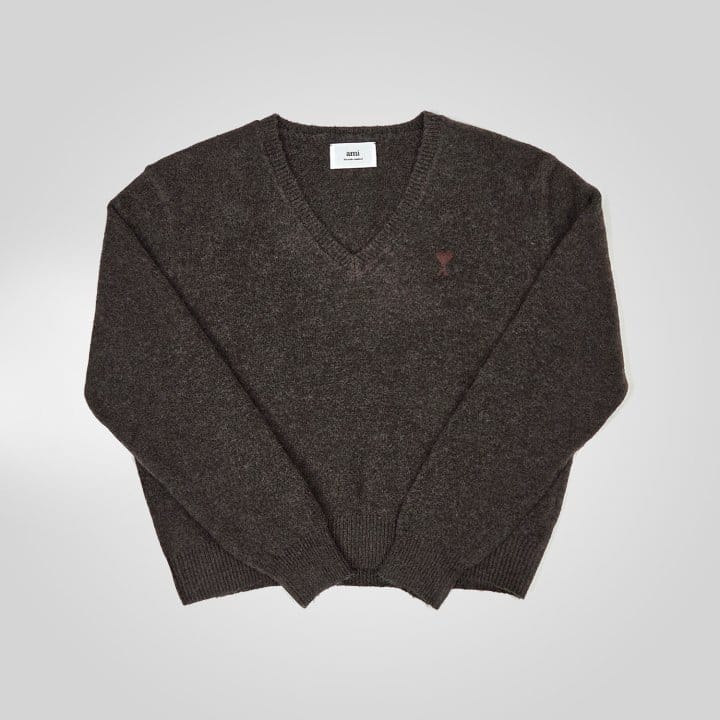 AMI 아미 드 꾀흐 까마이외 자수 V넥 울 스웨터