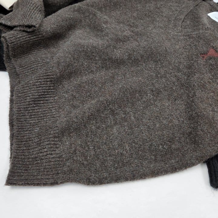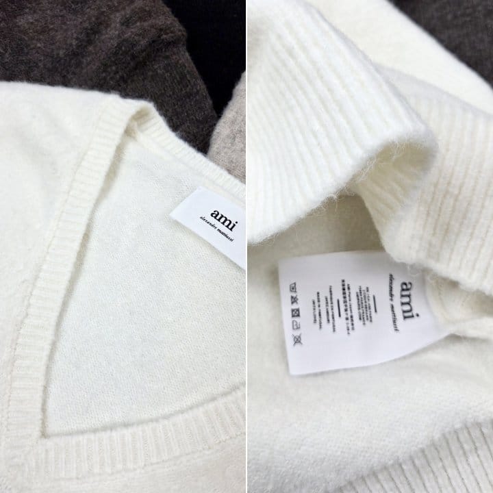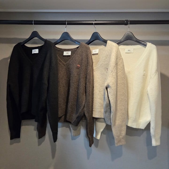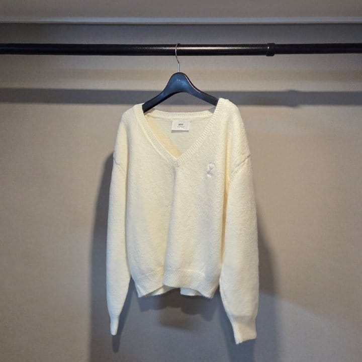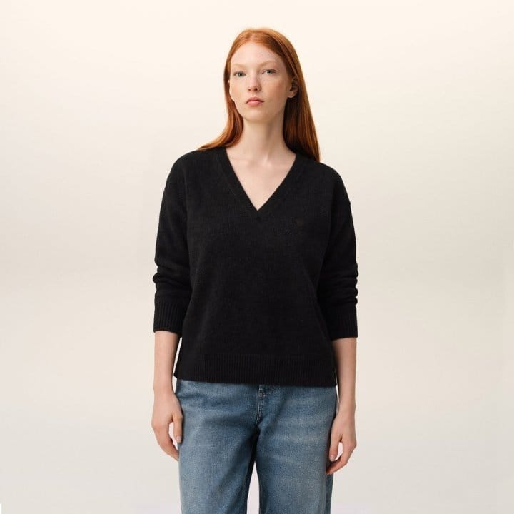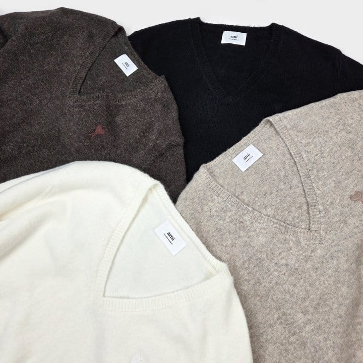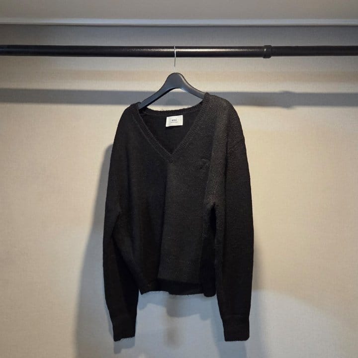 AMI 아미 드 꾀흐 까마이외 자수 V넥 울 스웨터