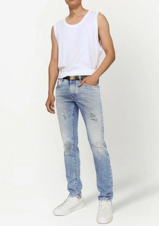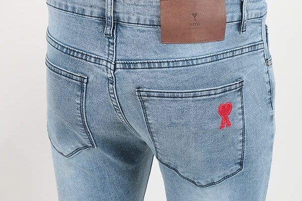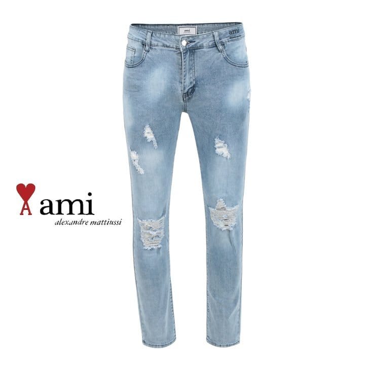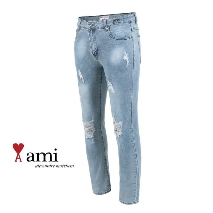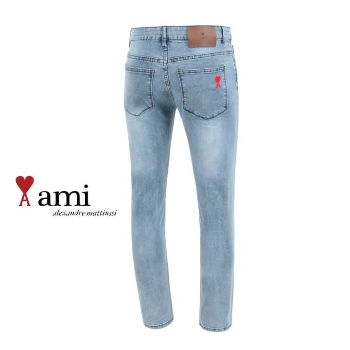 AMI 아미 드 꾀흐 레터링 데미지 워싱 슬림진