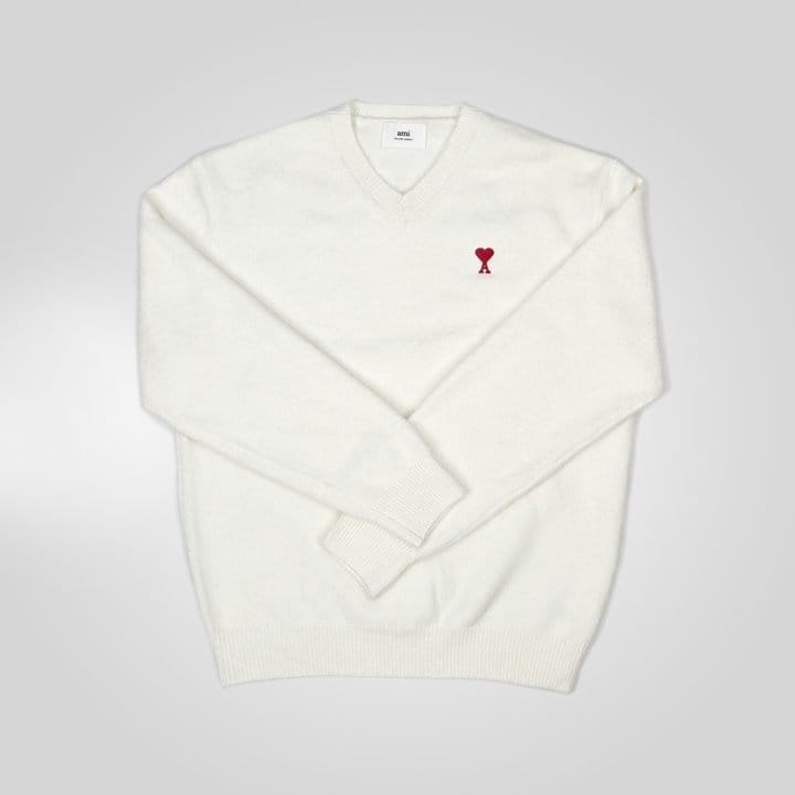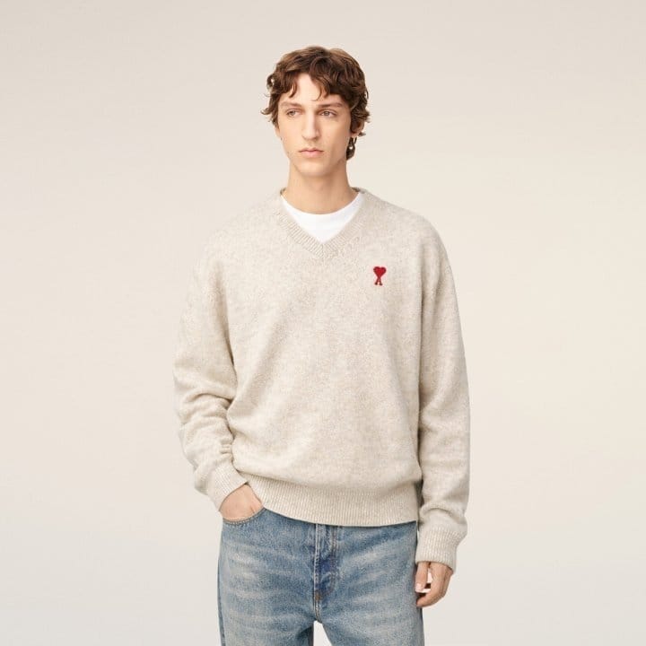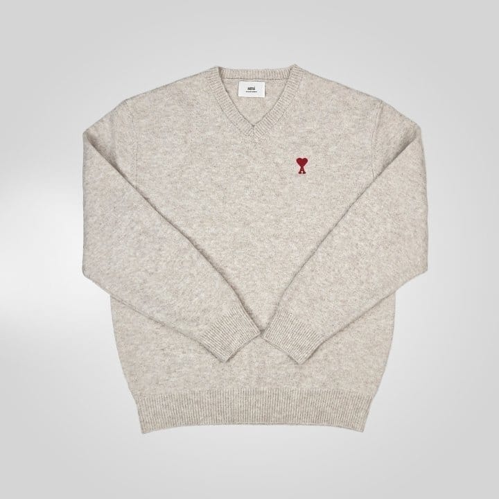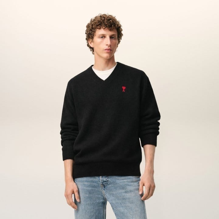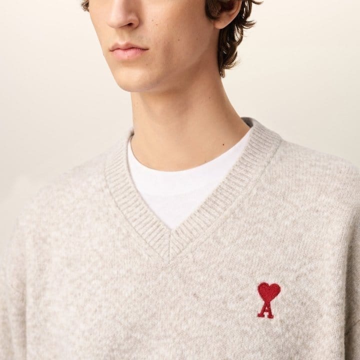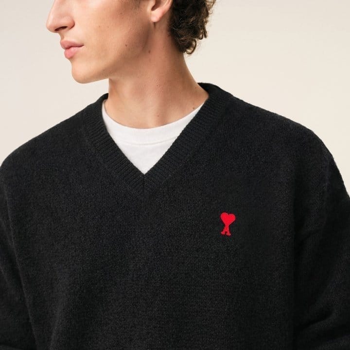 AMI 아미 드 꾀흐 엠브로이더리 V넥 울 스웨터