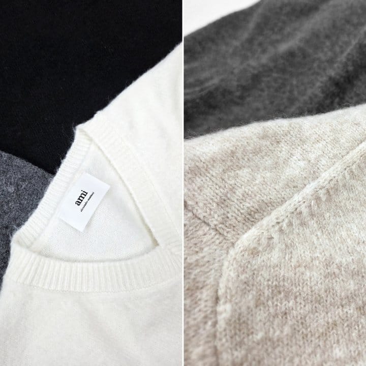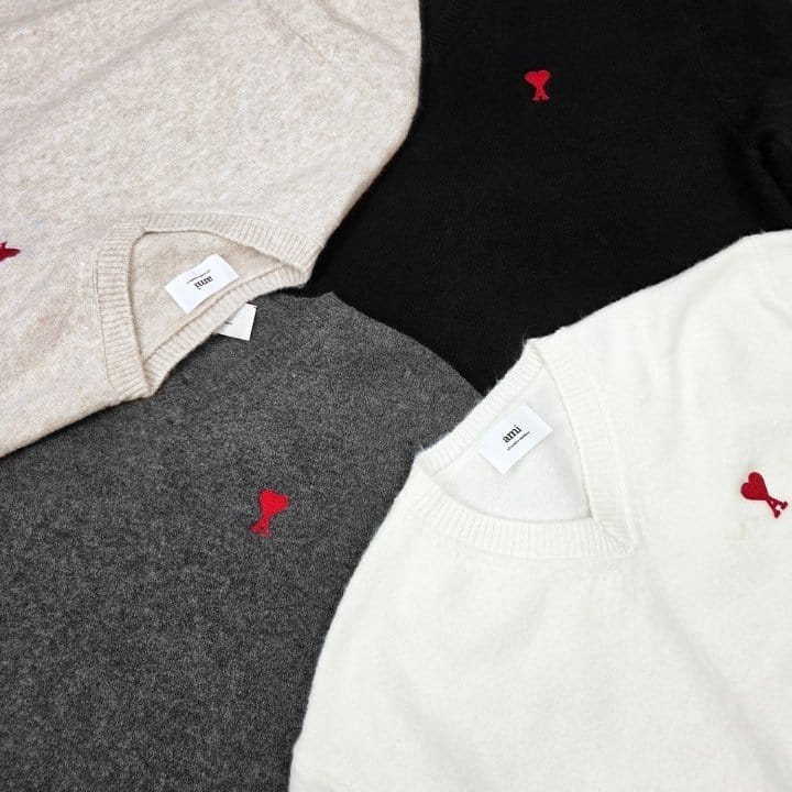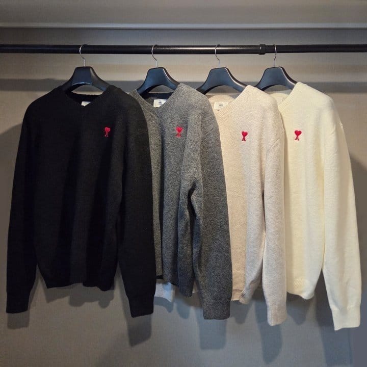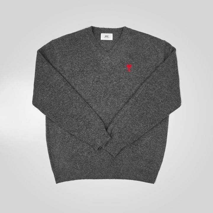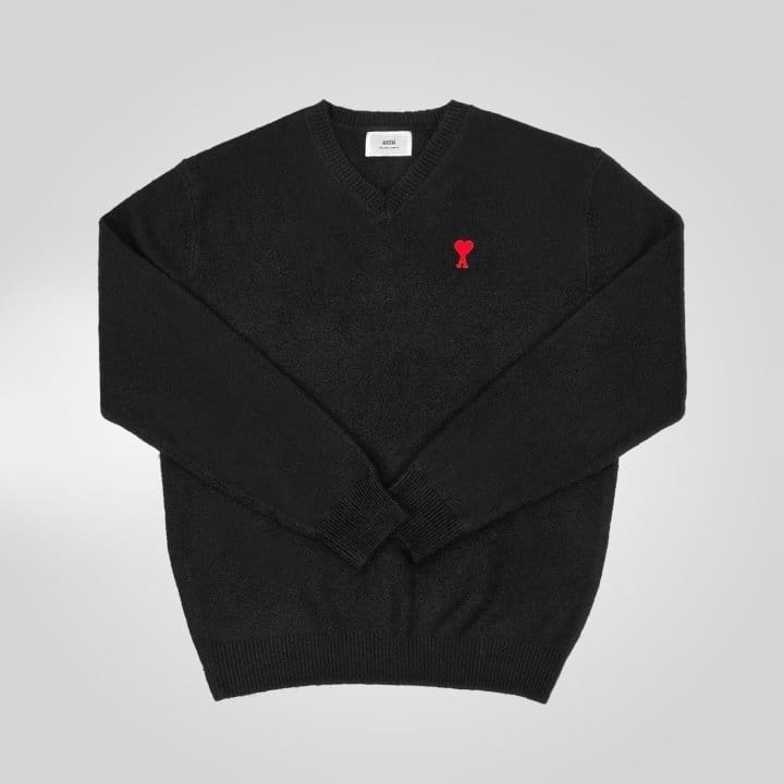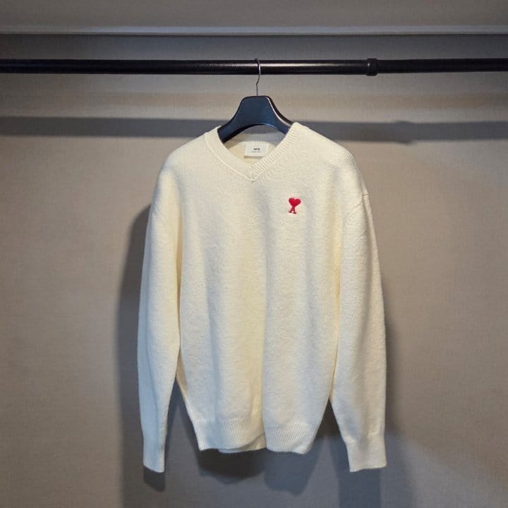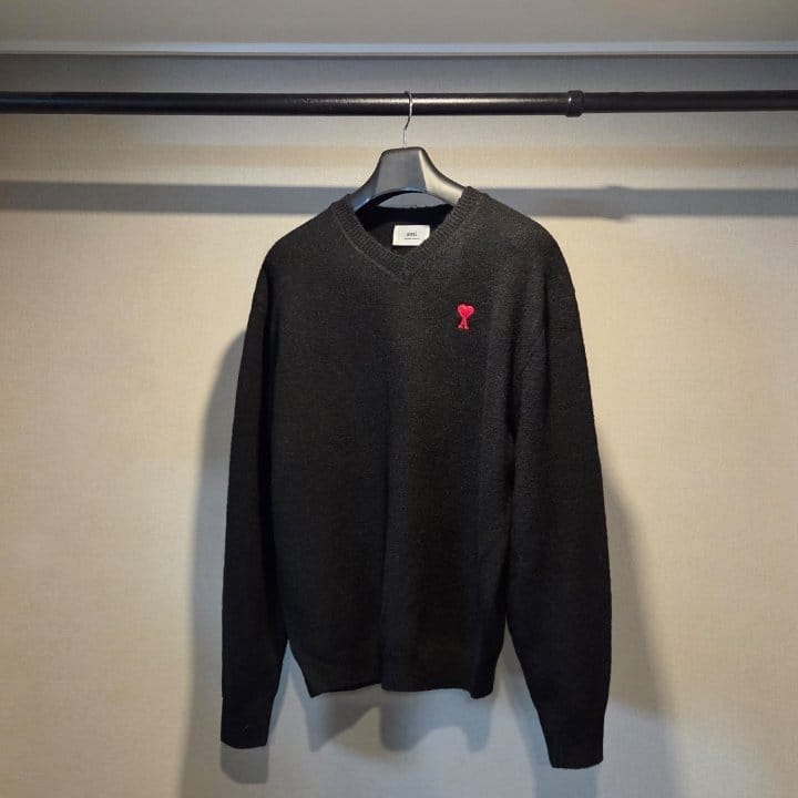 AMI 아미 드 꾀흐 엠브로이더리 V넥 울 스웨터