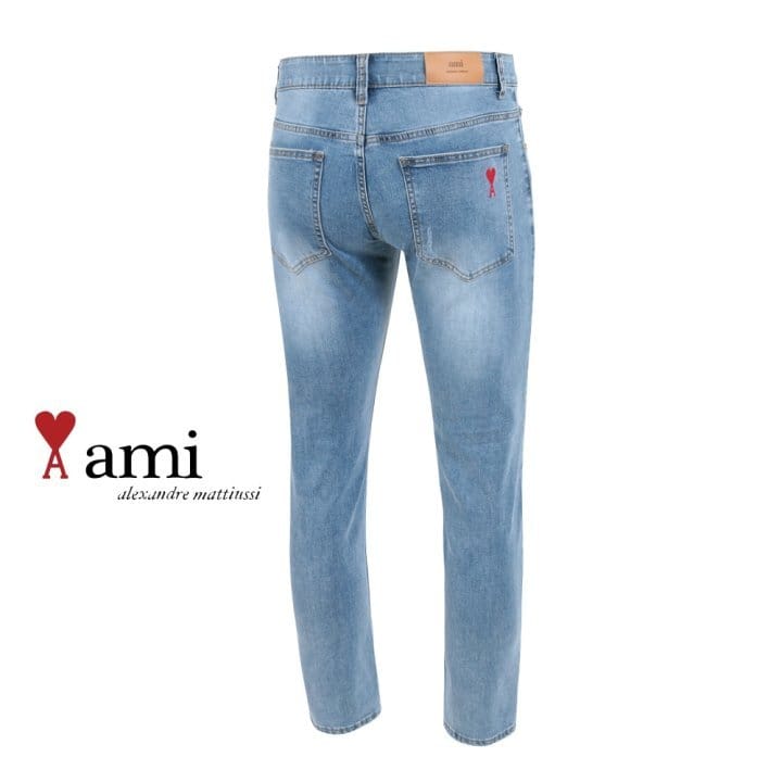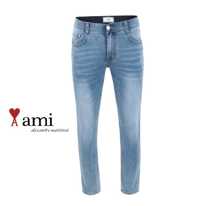AMI 아미 드 꾀흐 연청 워싱 슬림진