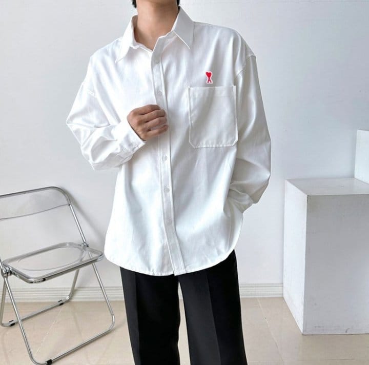 AMI 아미 스몰자수 패치 옥스포드 오버핏 셔츠