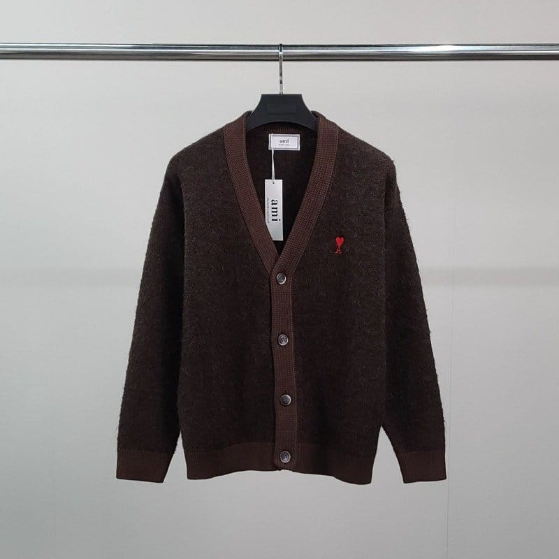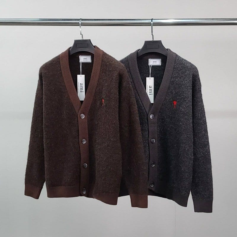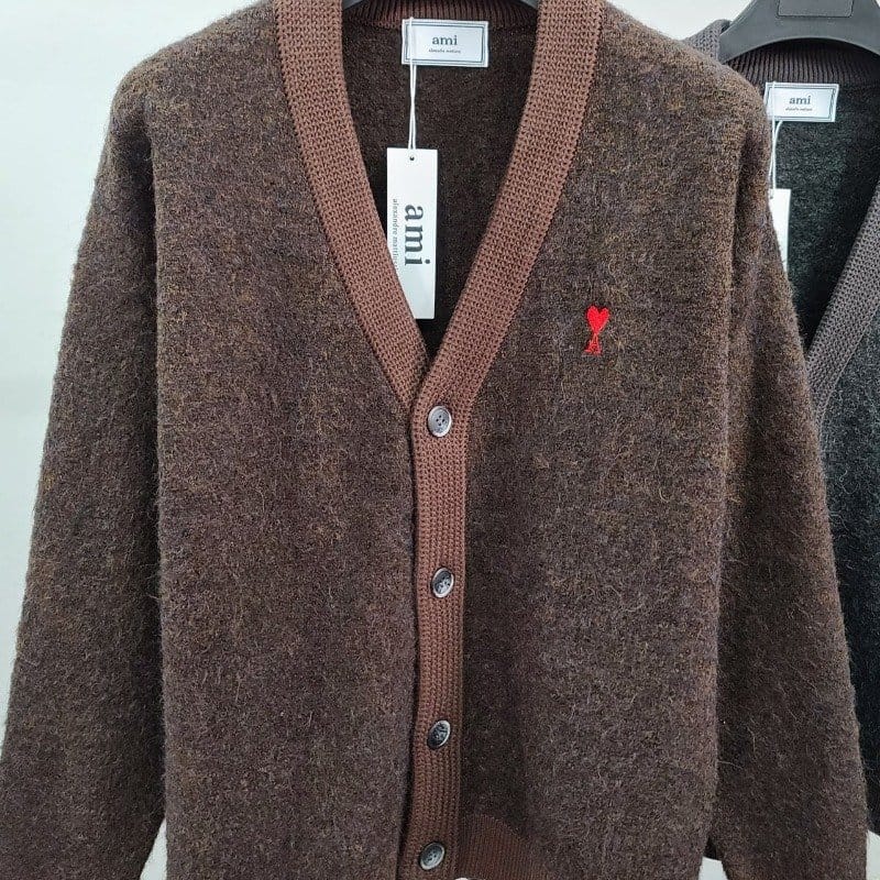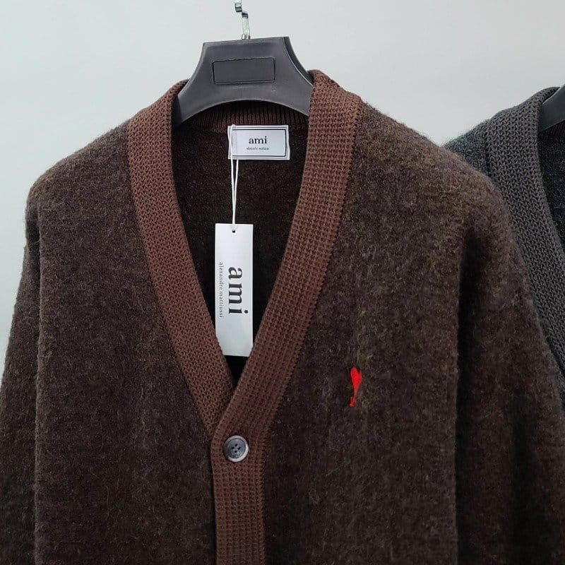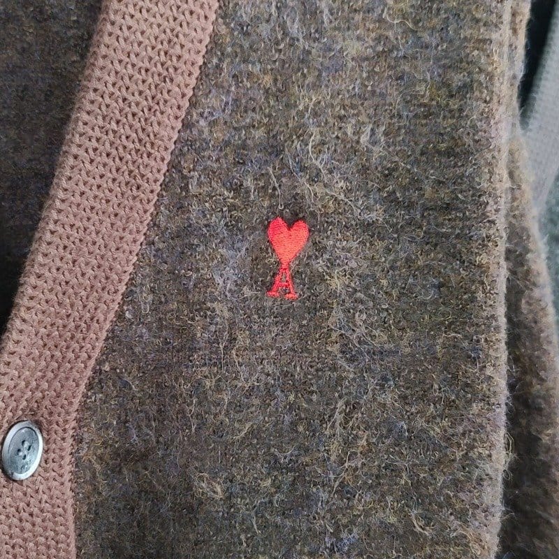 AMI 아미 스몰하트자수 알파카 가디건
