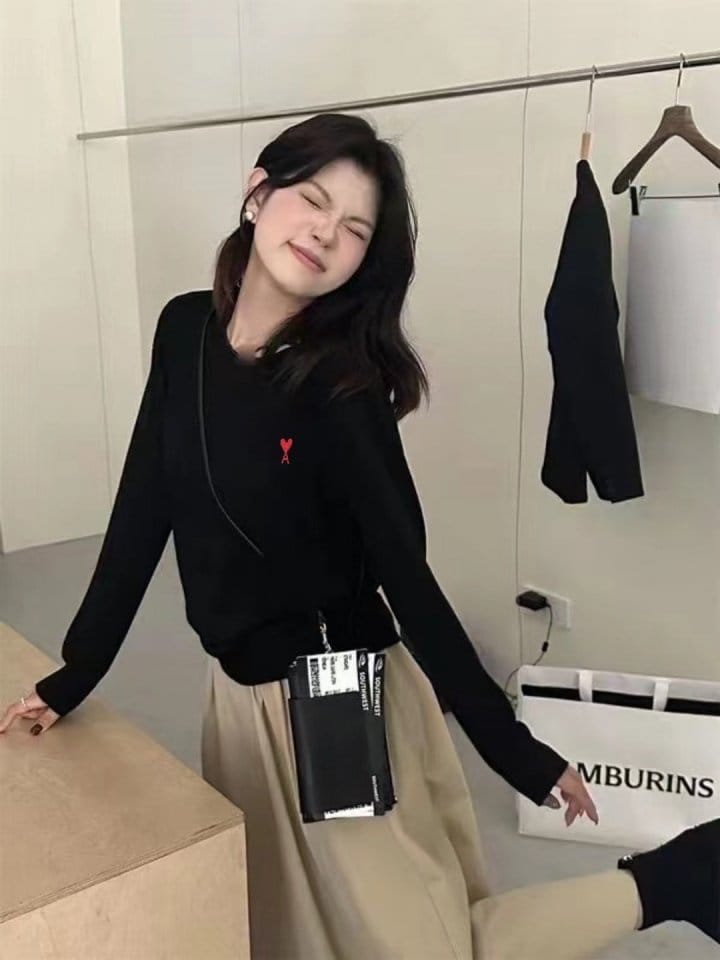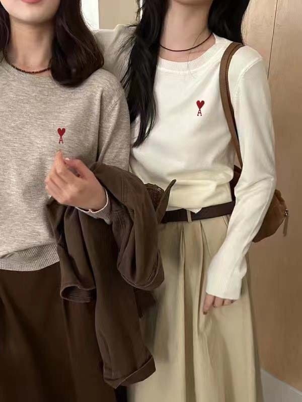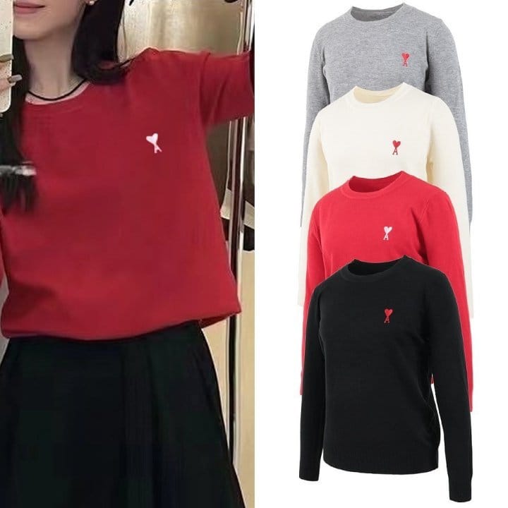 AMI 아미 하트 라운드 울 니트