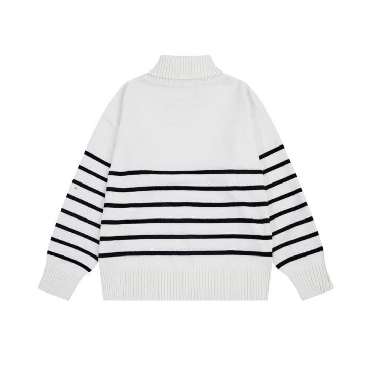 AMI 아미 063 빅 하트 스트라이프 터틀넥 니트