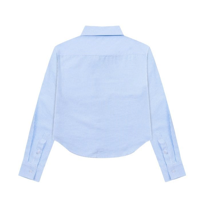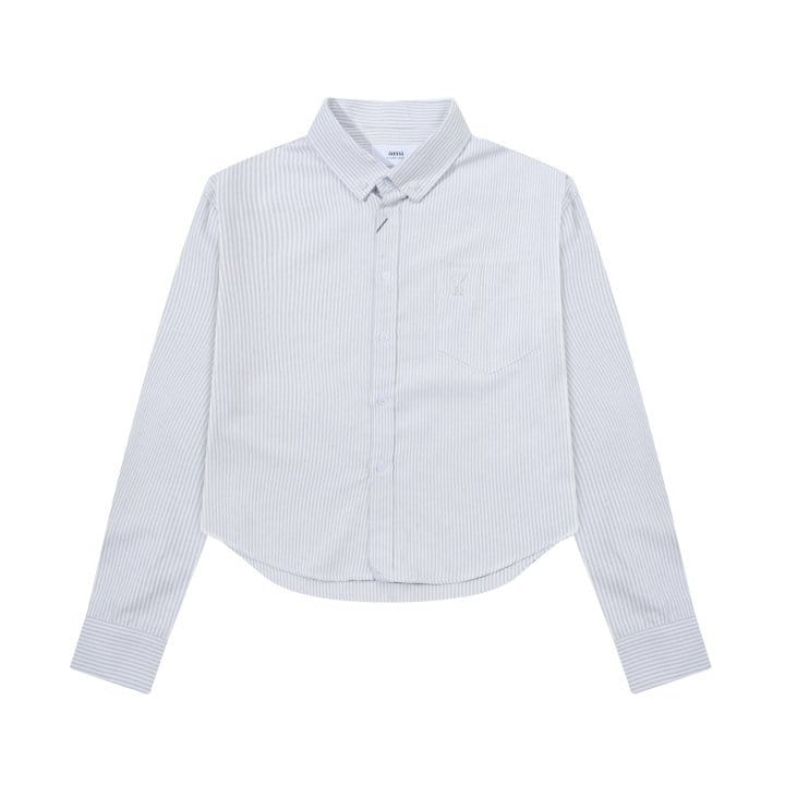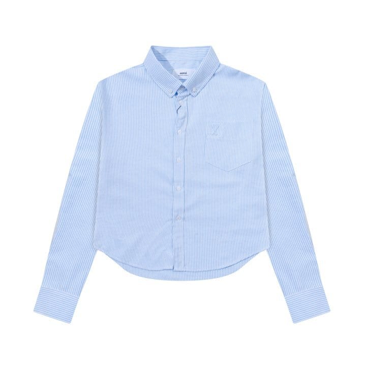 AMI 아미 2230 스몰 하트 톤온톤 로고 스트라이프 크롭 셔츠