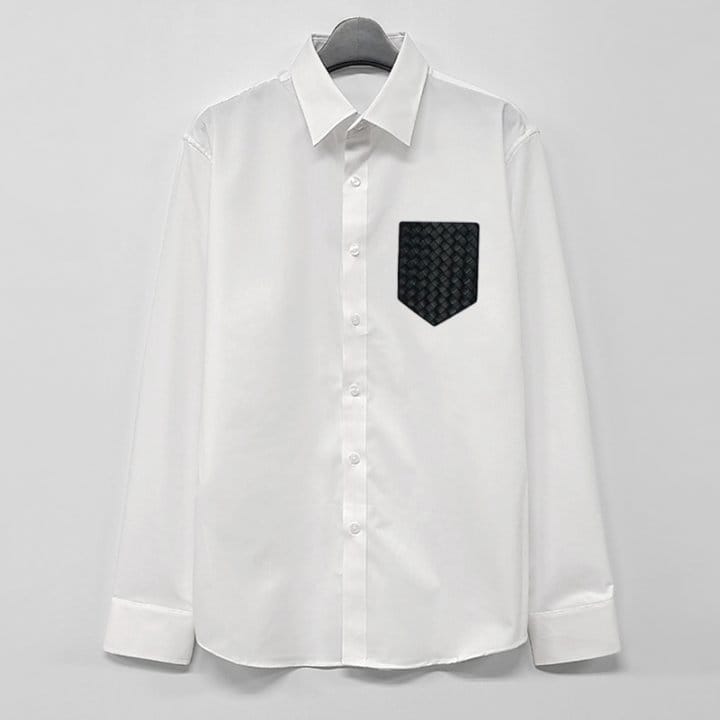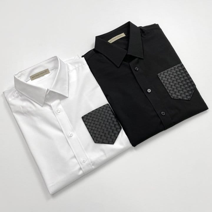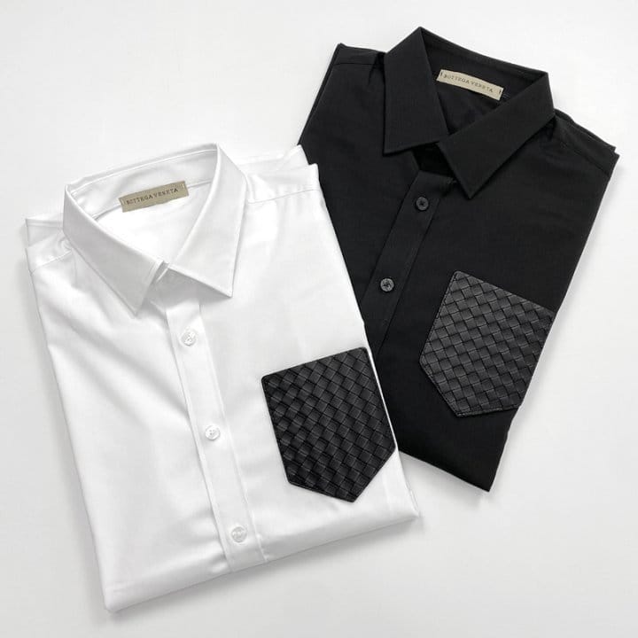 BOTTEGA VENETA 보테가베네타 레더포켓 솔리드 셔츠