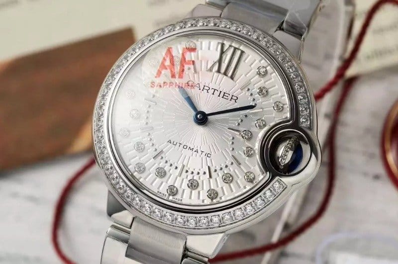 CARTIER 까르띠에 발롱 브루 드 화이트 다이얼 다이아 베젤 스틸 33mm