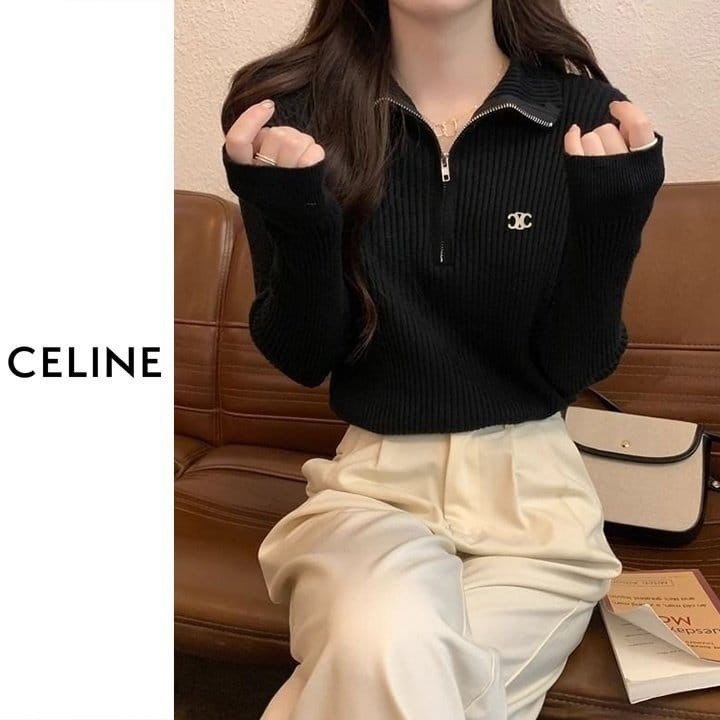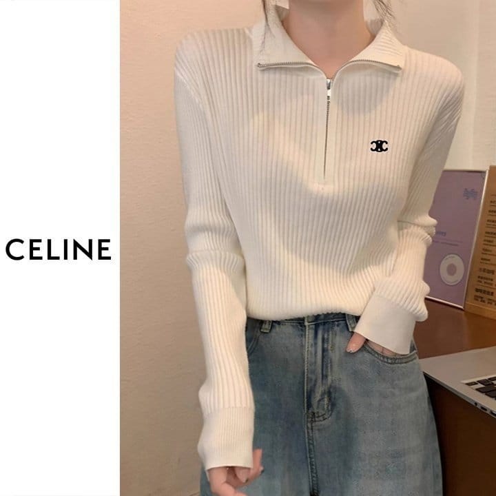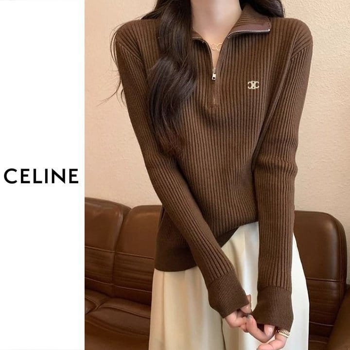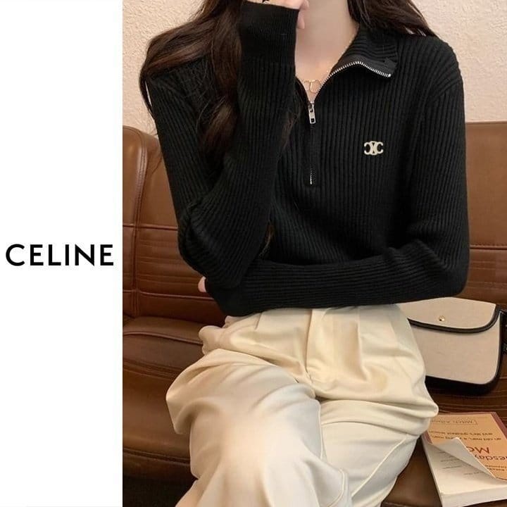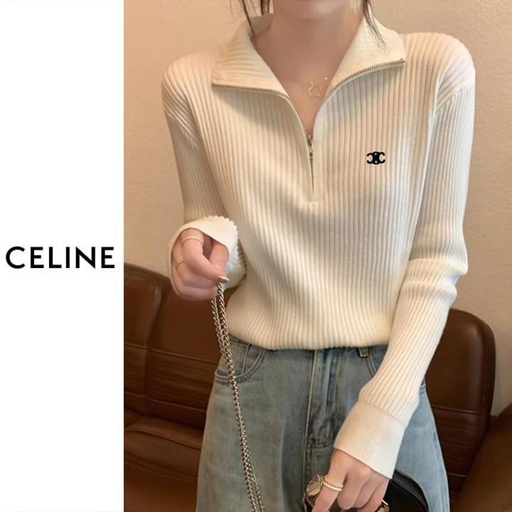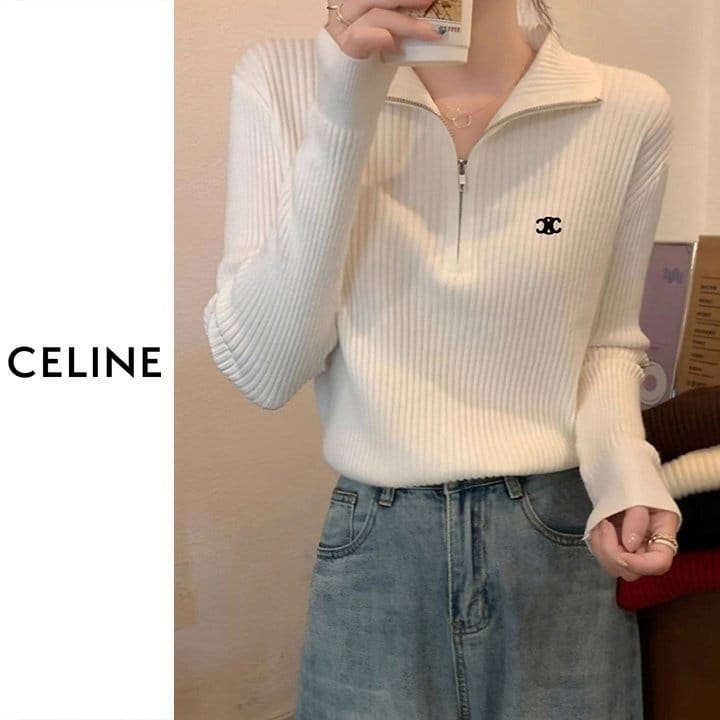 CELINE 셀린느 베이직 반집업 골지 니트 4COLOR
