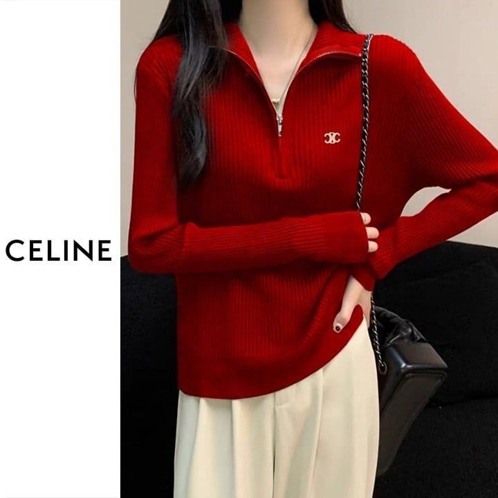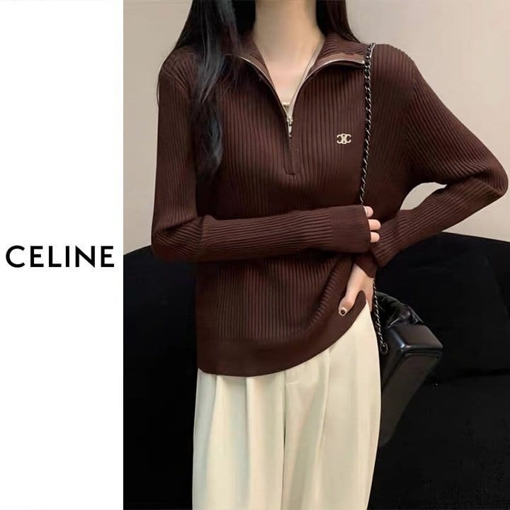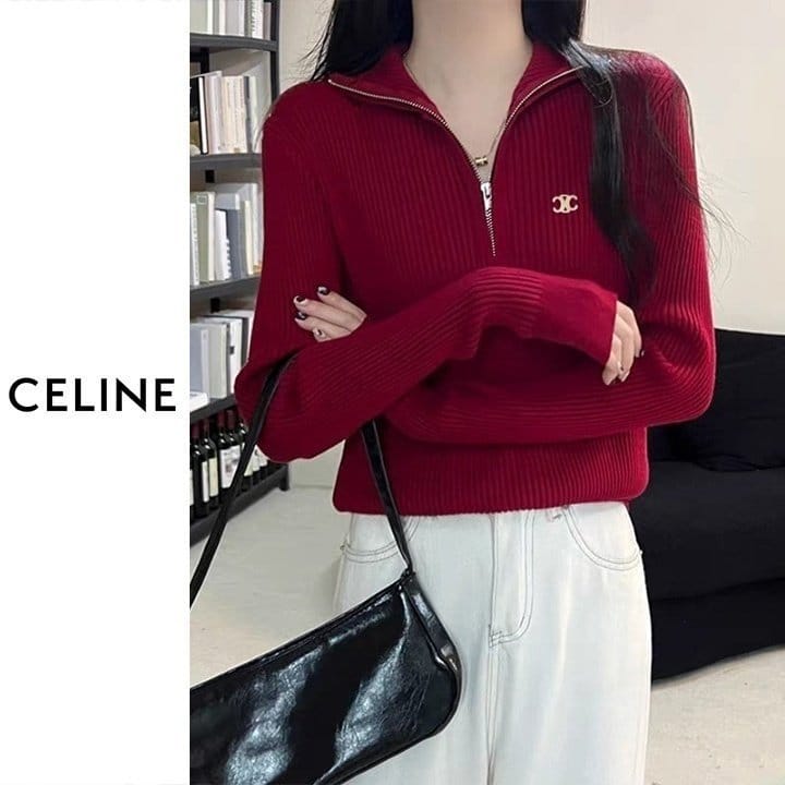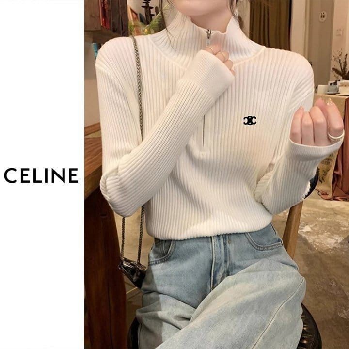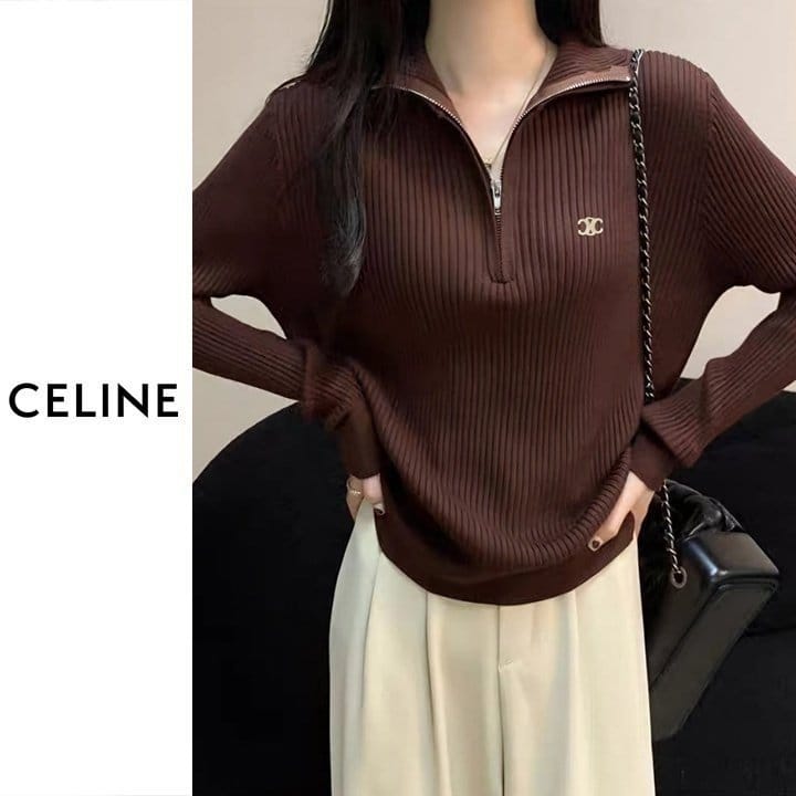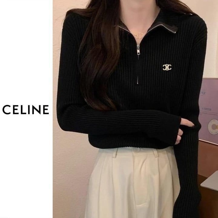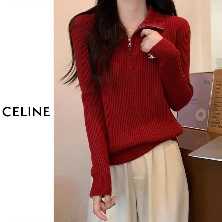 CELINE 셀린느 베이직 반집업 골지 니트 4COLOR