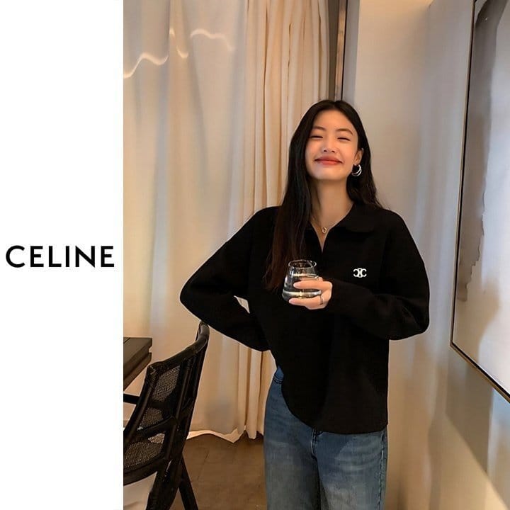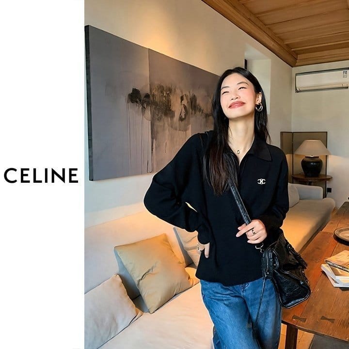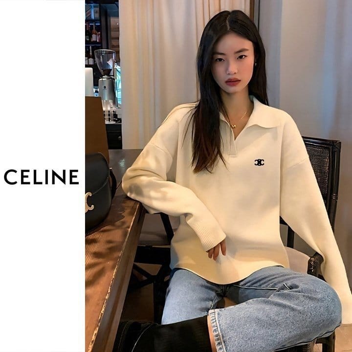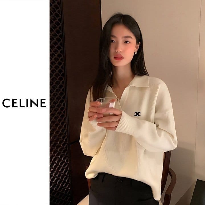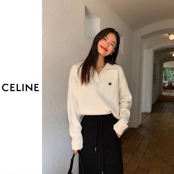 CELINE 셀린느 브이넥 반카라 니트 2COLOR