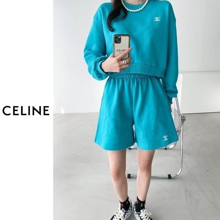 CELINE 셀린느 크롭 맨투맨 반바지세트
