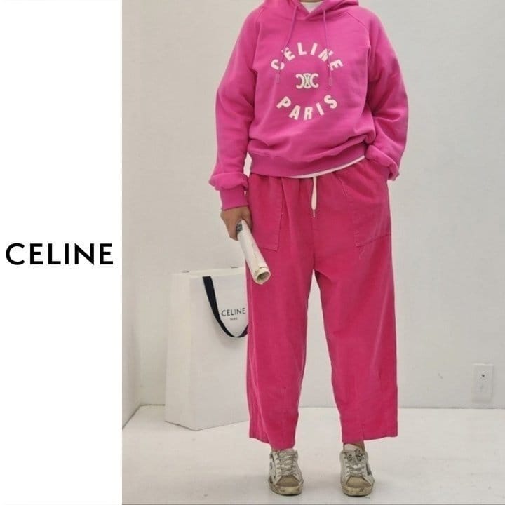 CELINE 셀린느 패치 레터링 기모 후드
