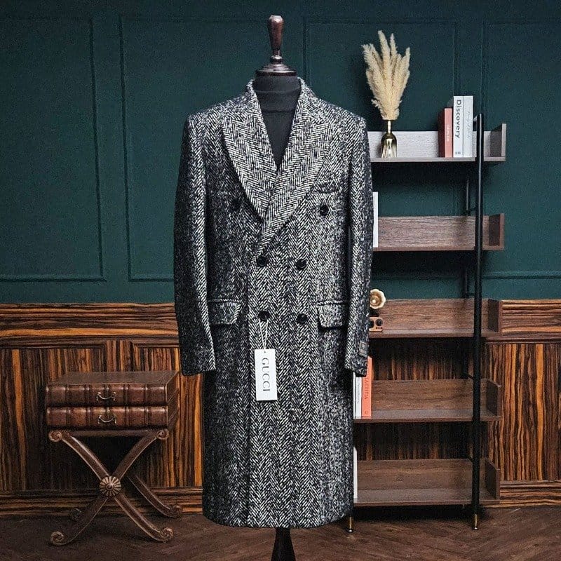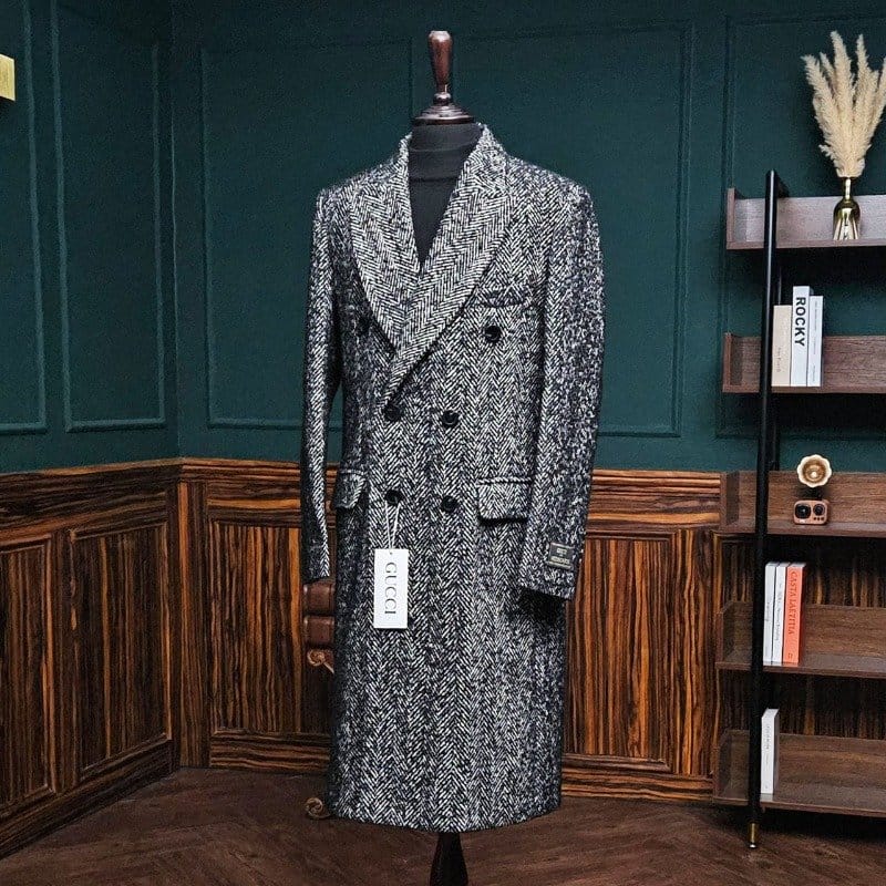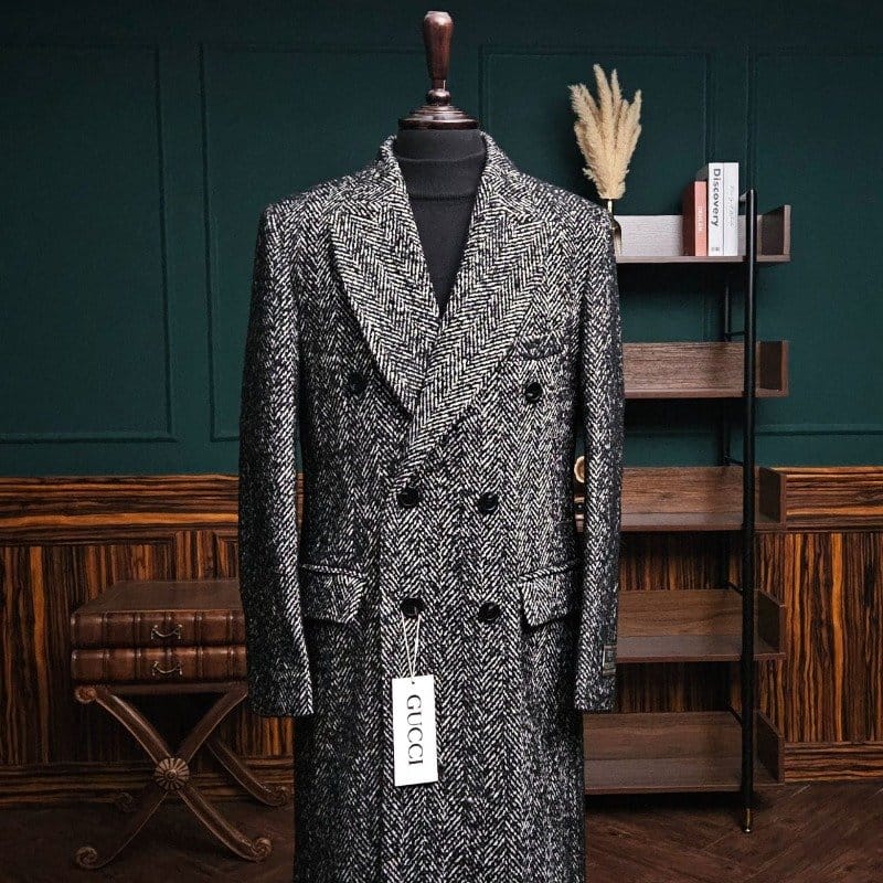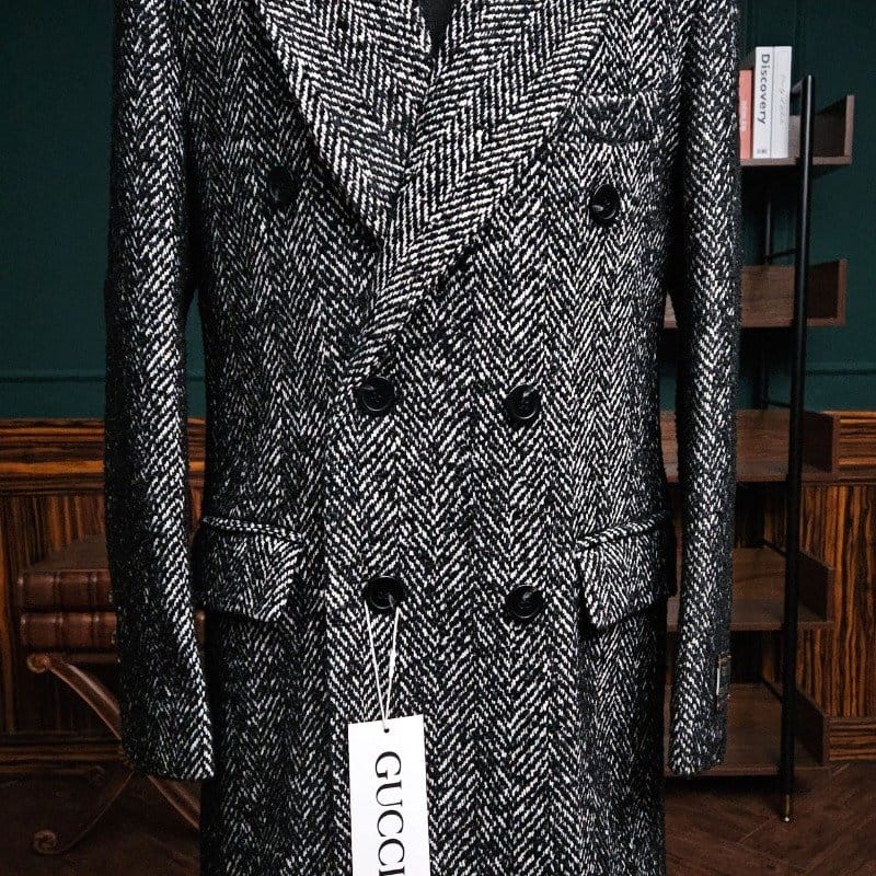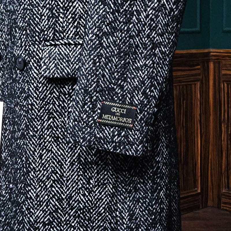 GUCCI 구찌 울 헤링본 믹싱 더블 코트