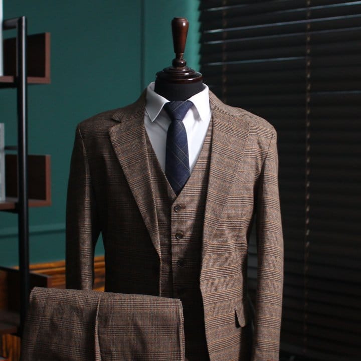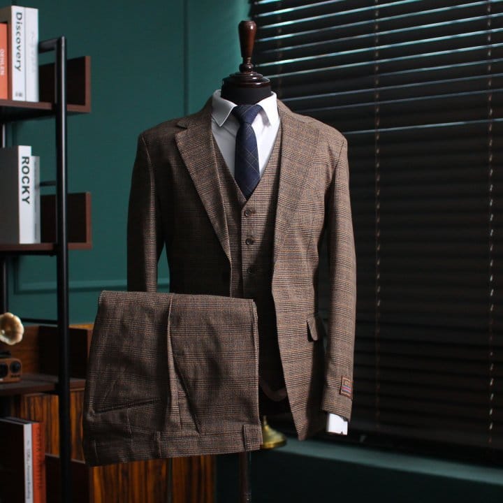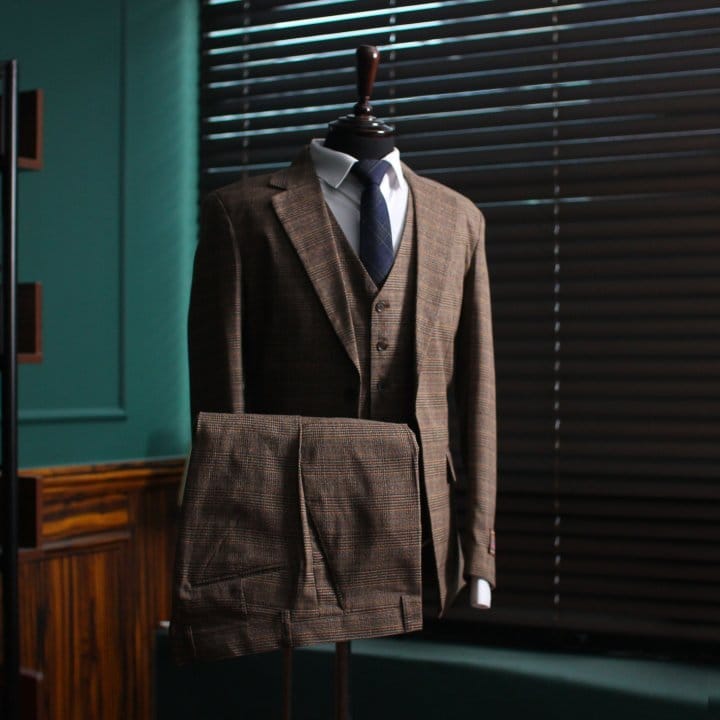 GUCCI 구찌 클래식 글랜체크 3피스 싱글 셋업