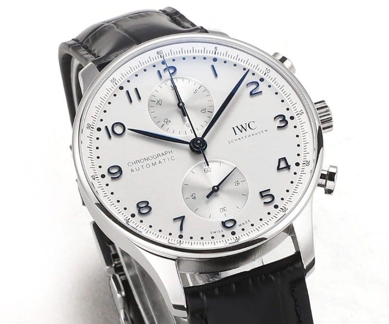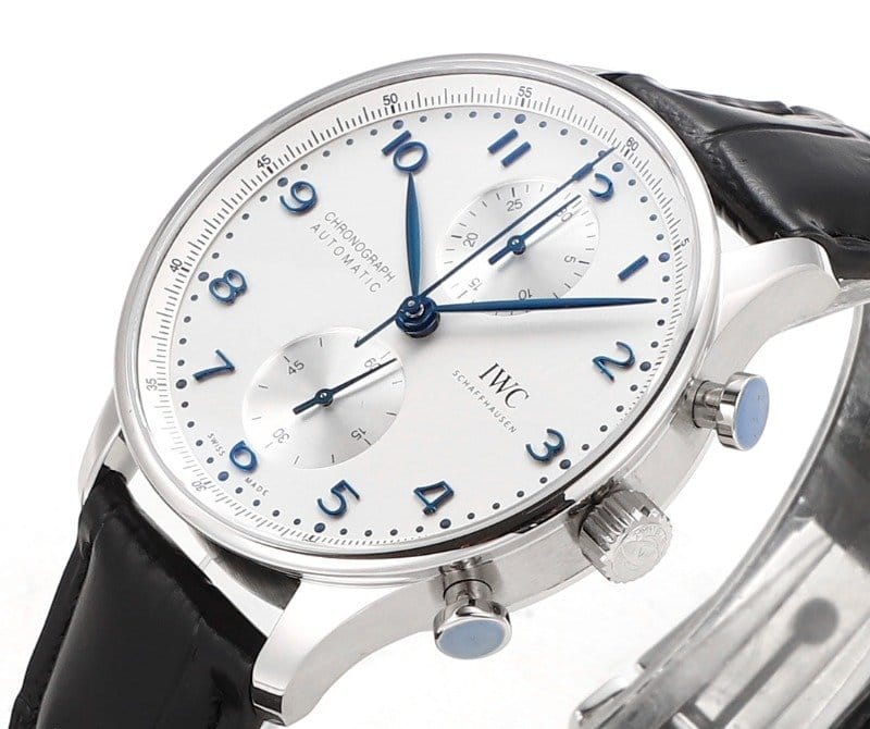 IWC 아이더블유씨 포르투기저 크로노그래프 화이트/블루 다이얼 레더 스트랩 40mm IW371604