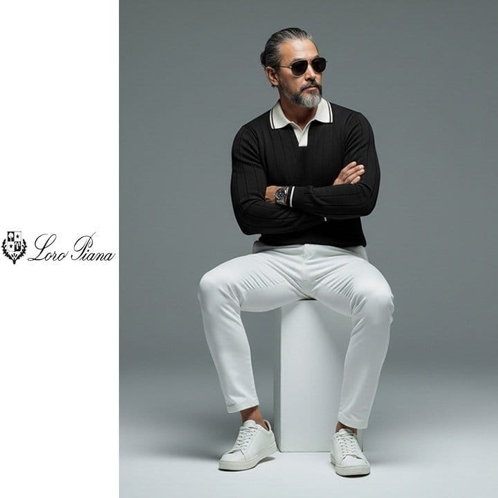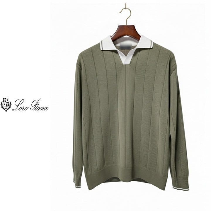 LOROPIANA 로로피아나 배색 카라 라인 니트 2COLOR