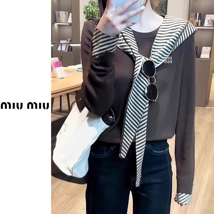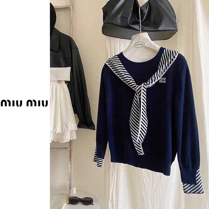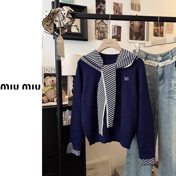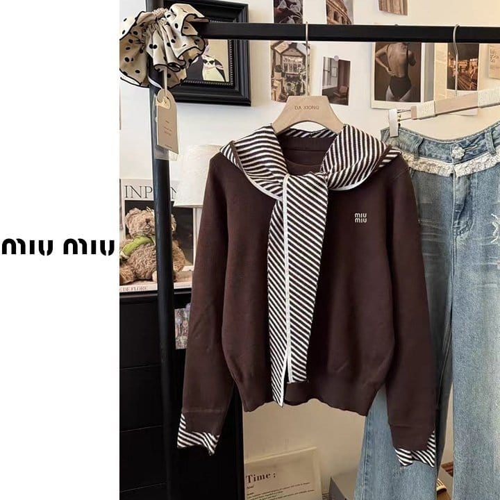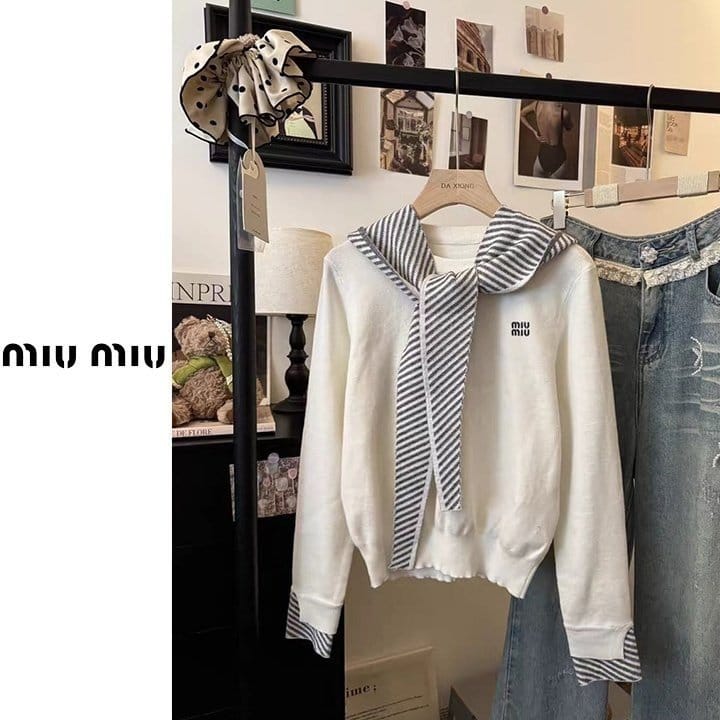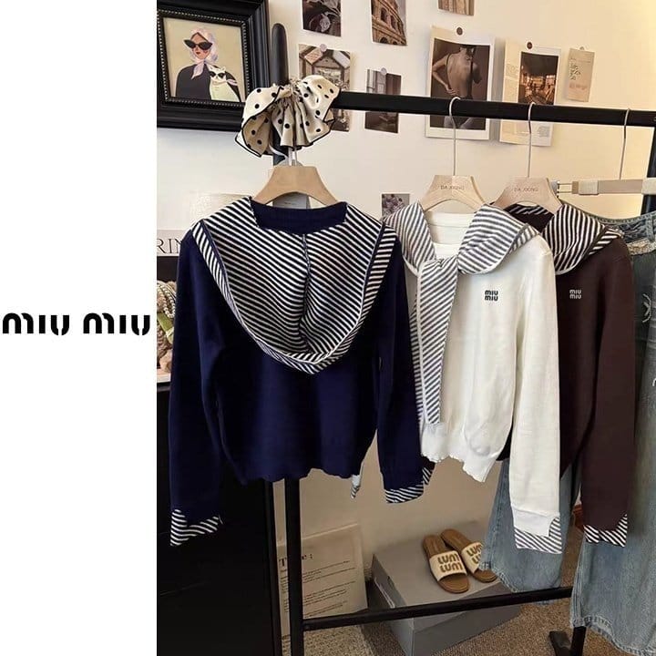 MIUMIU 미우미우 스트라이프 후드숄 니트 3COLOR