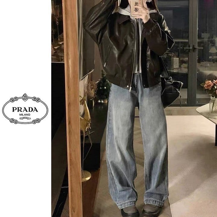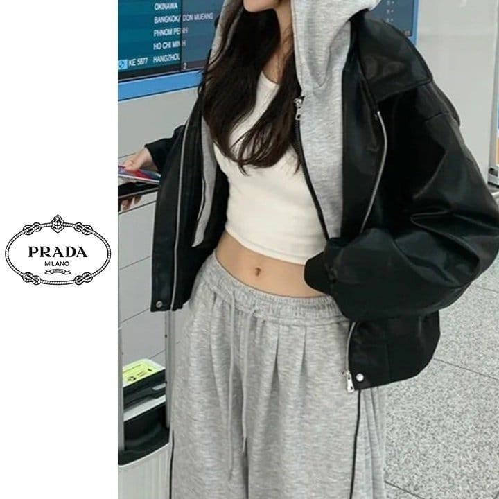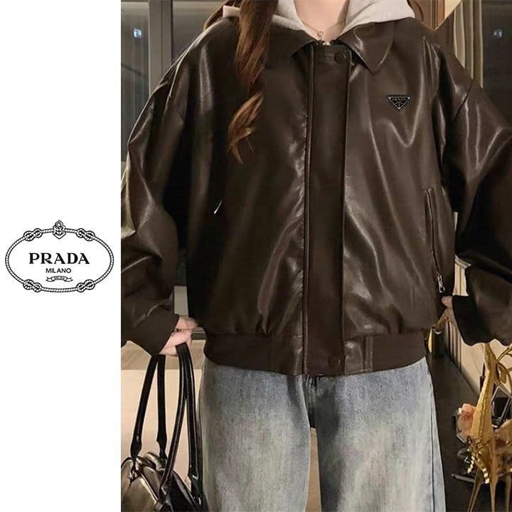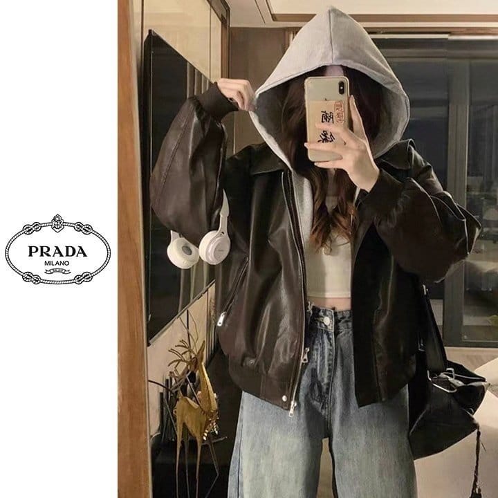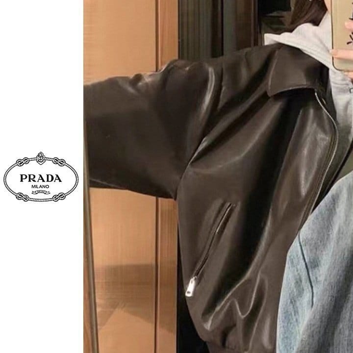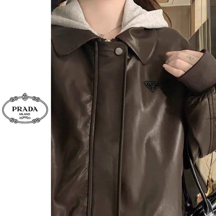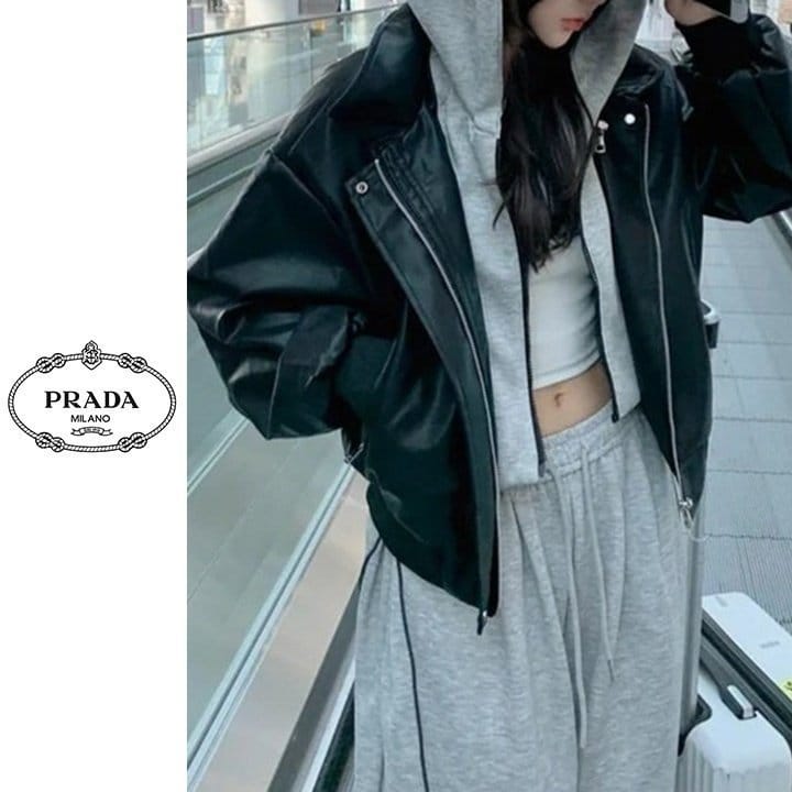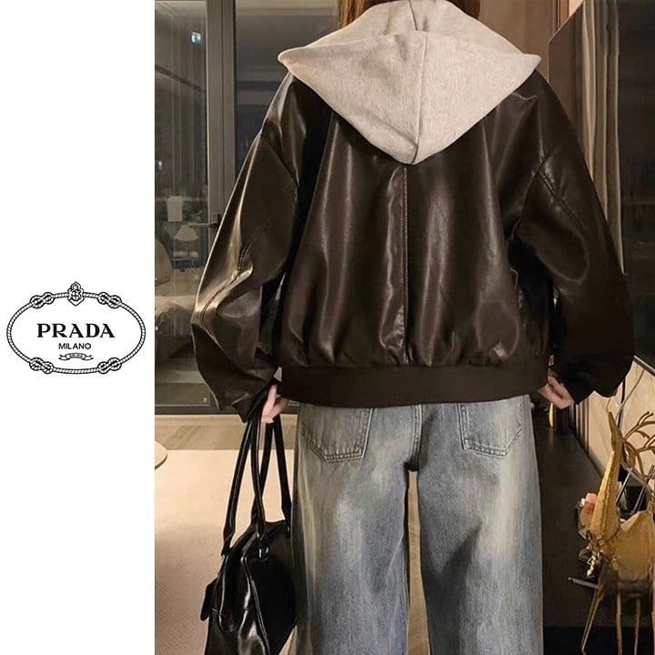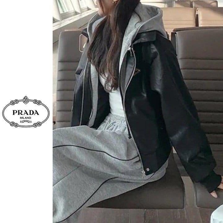 PRADA 프라다 레이어드 후드 레더 자켓 2COLOR