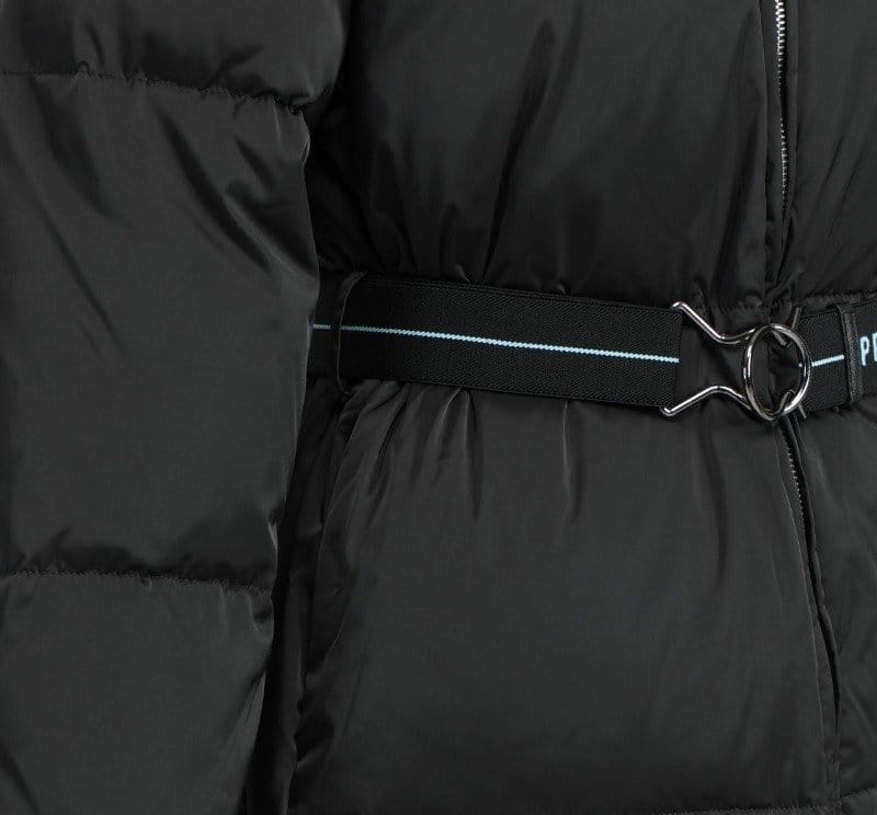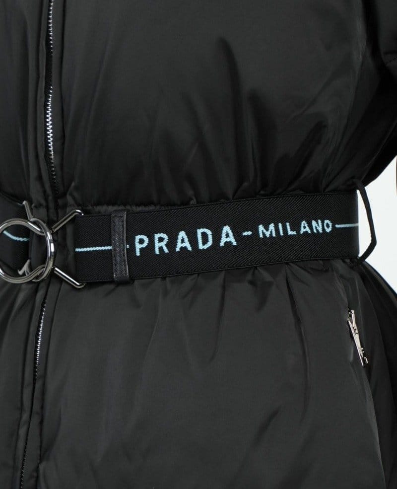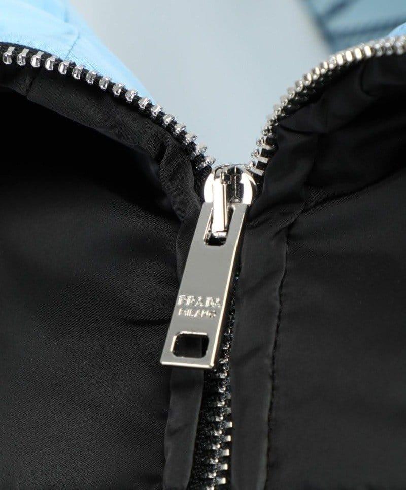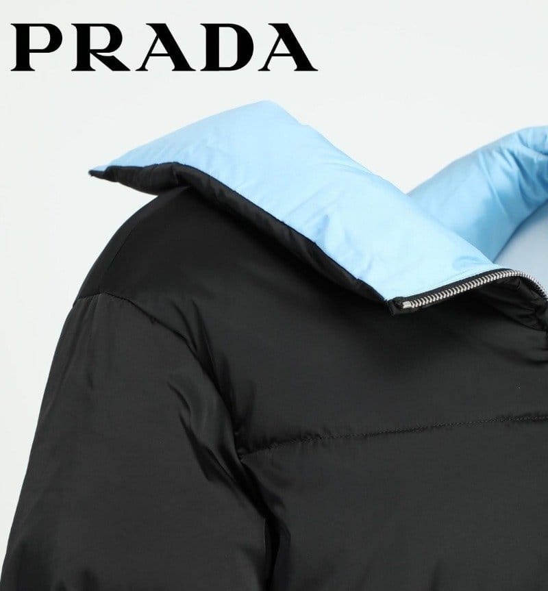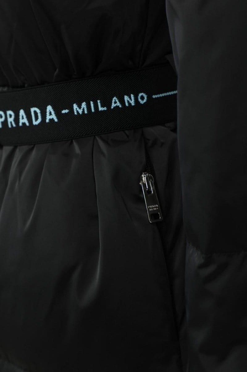 PRADA 프라다 리나일론 삼각로고 개버딘 후드 다운 코트 패딩