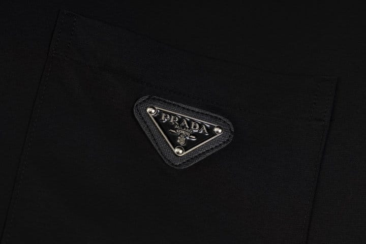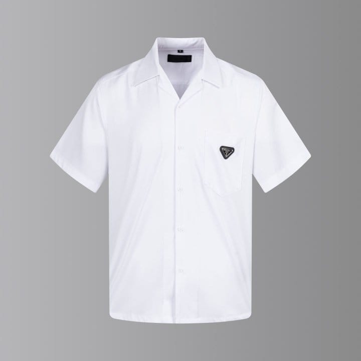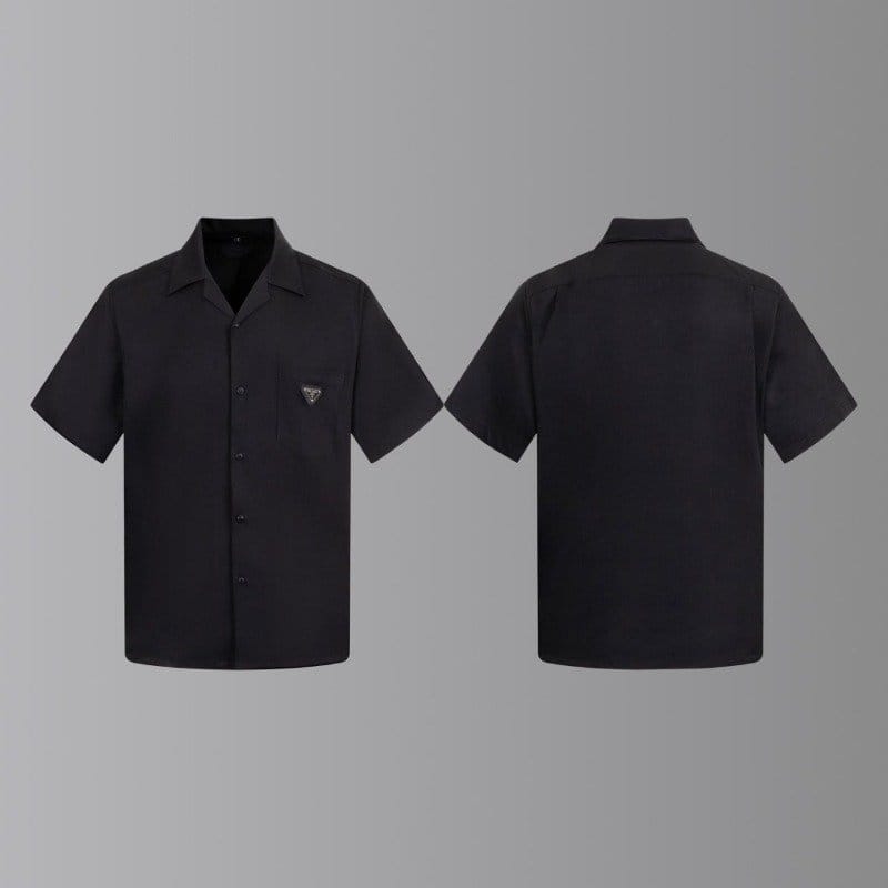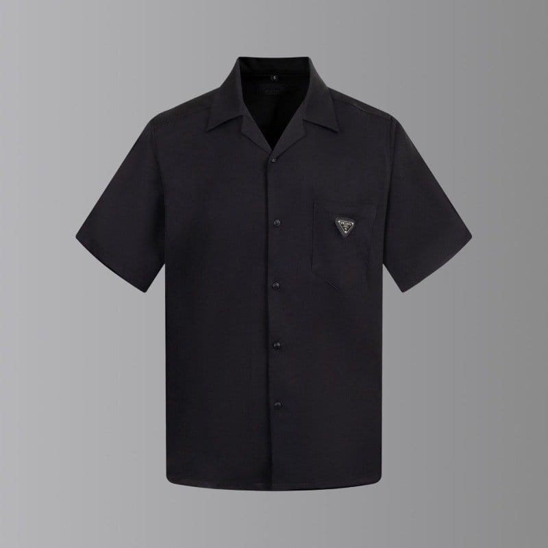 PRADA 프라다 메탈 플레이트 오픈 카라 쇼트 슬리브 셔츠
