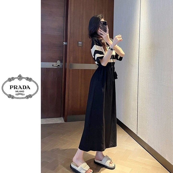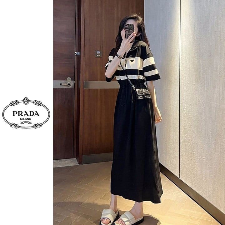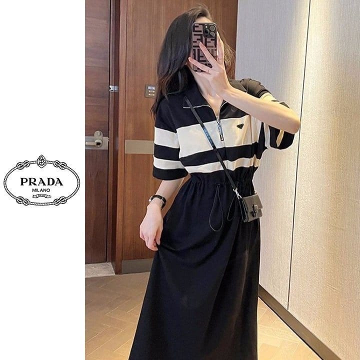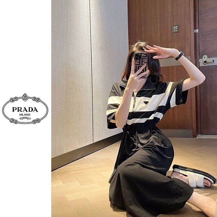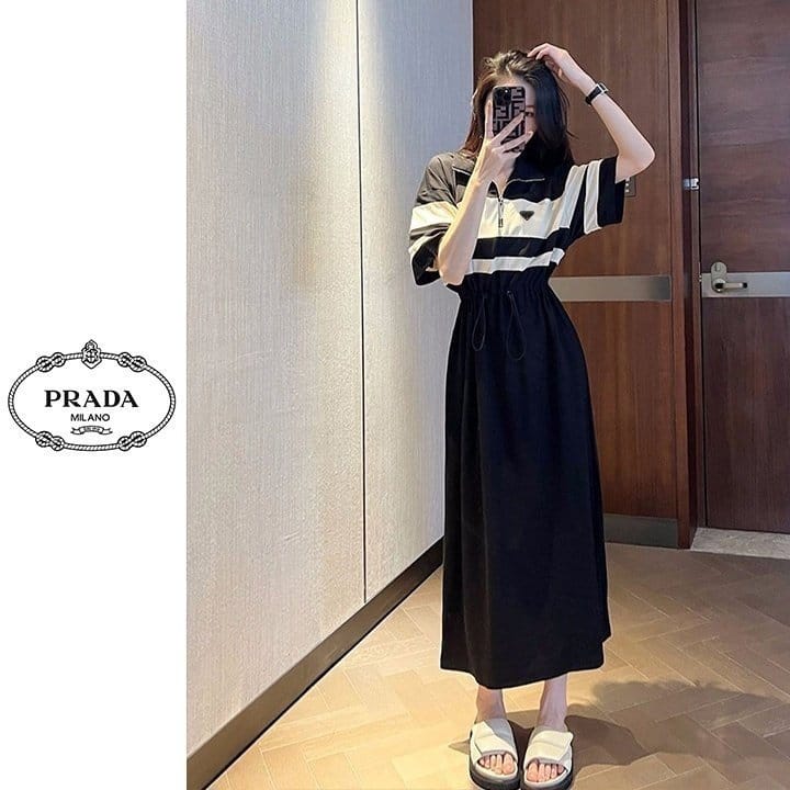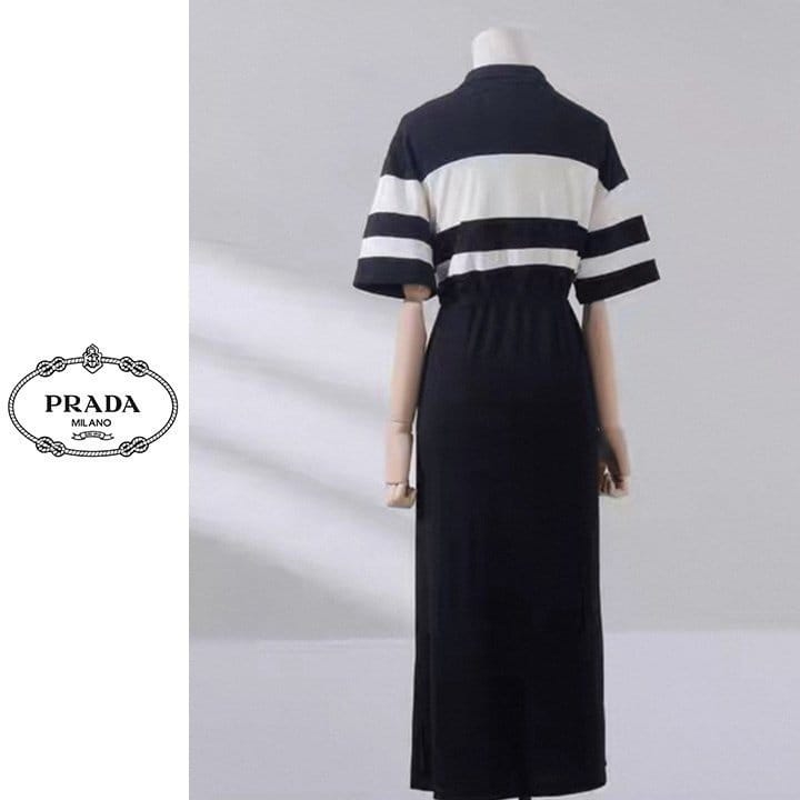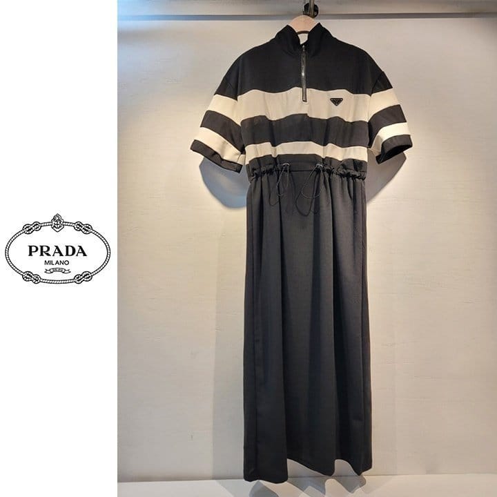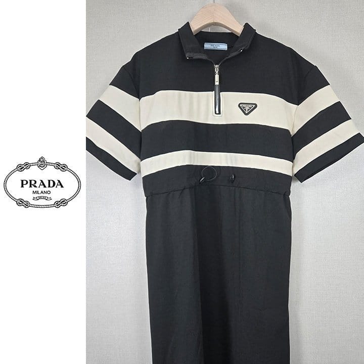 PRADA 프라다 배색 반집업 원피스