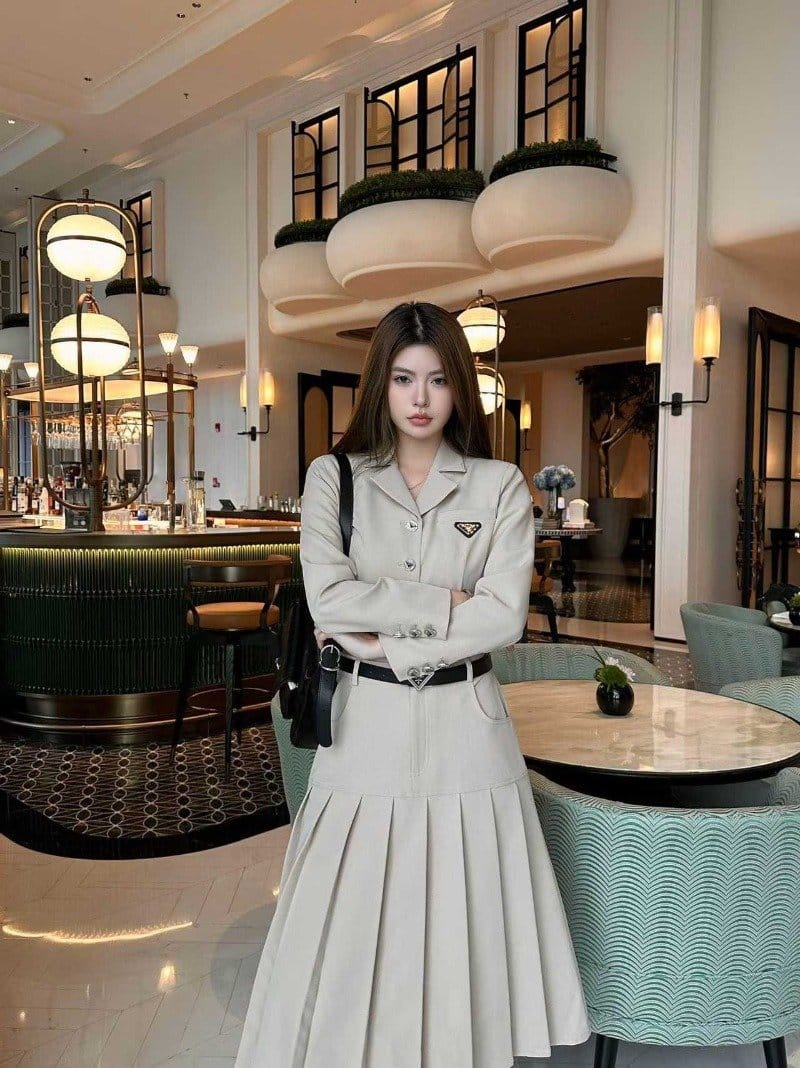 PRADA 프라다 숏 블레이저 & 플리츠 스커트 셋업