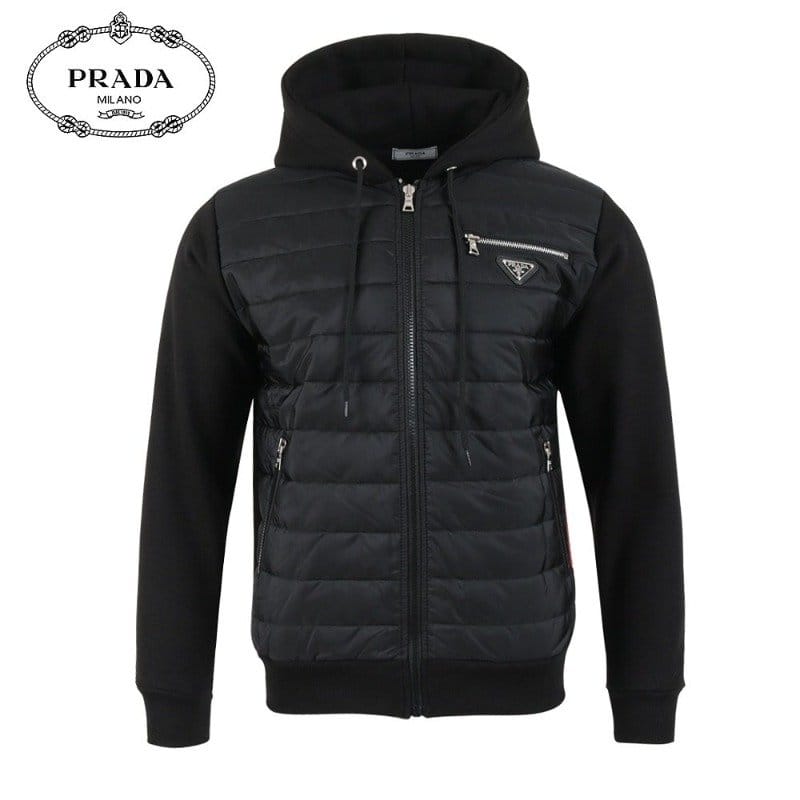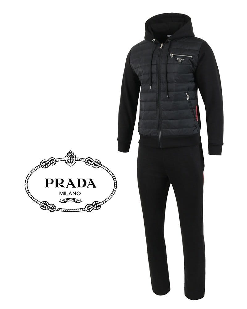 PRADA 프라다 지퍼 로고 후드 패딩 셋업