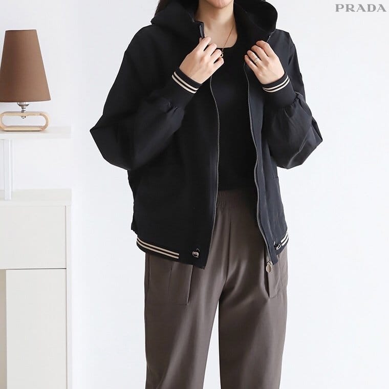 PRADA 프라다 집업 우븐 하이넥 자켓
