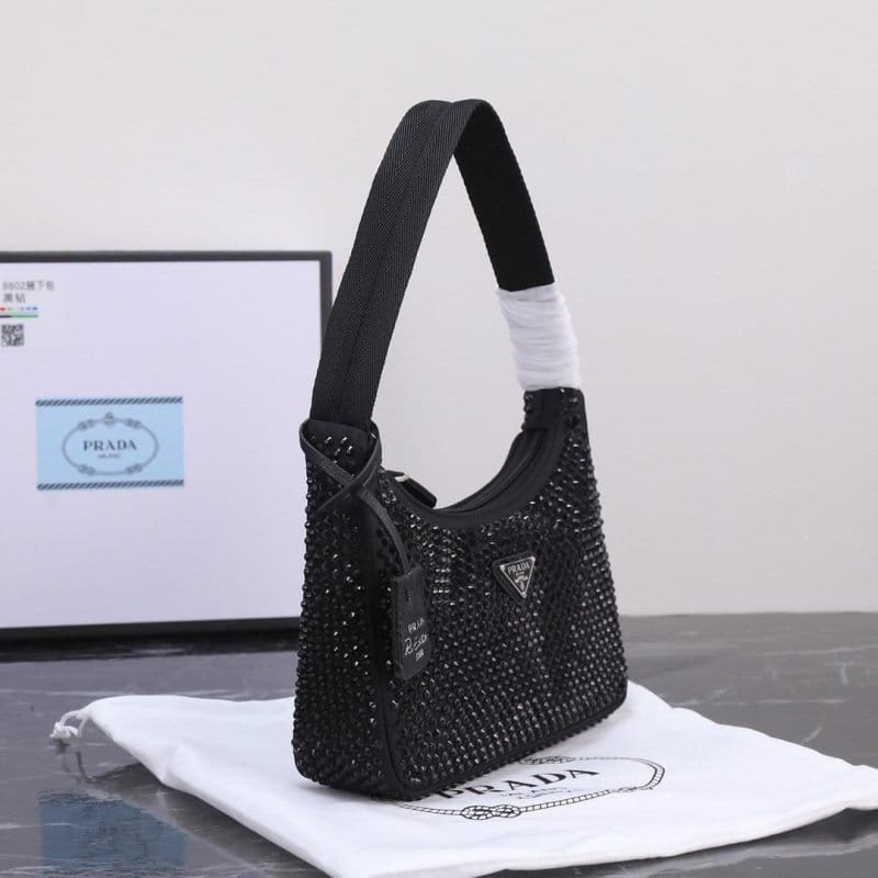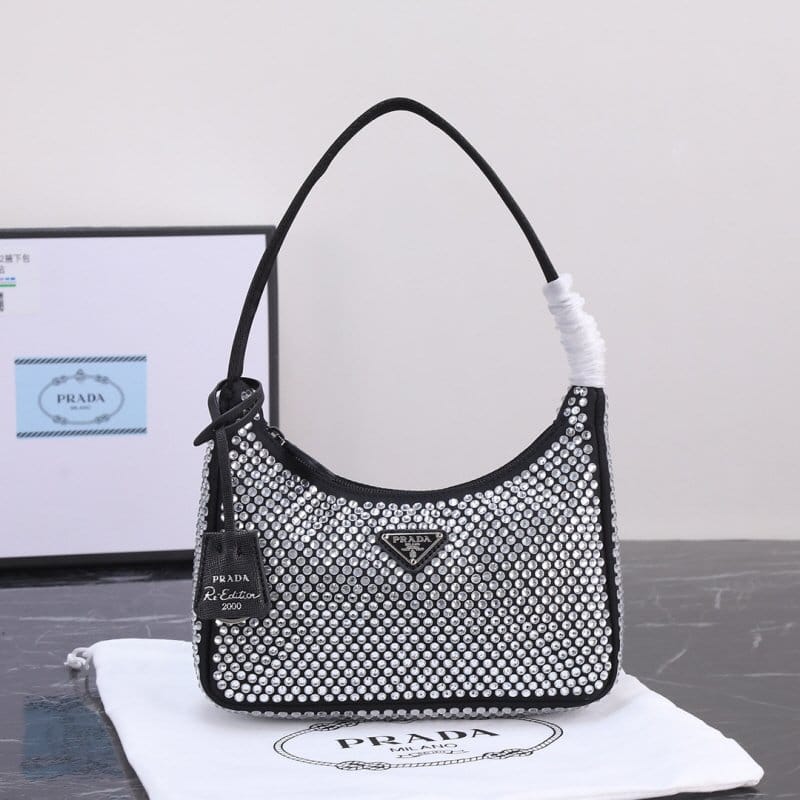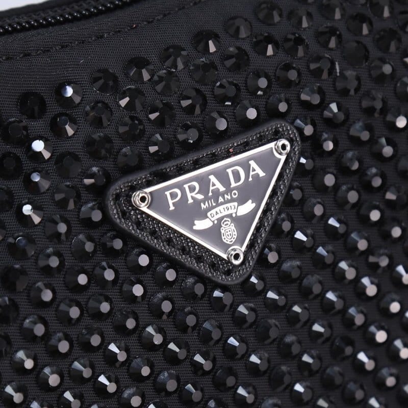 PRADA 프라다 크리스털 장식 새틴 미니백