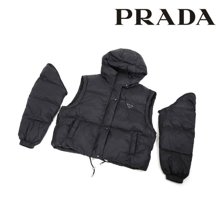 PRADA 프라다 클래식 트라이앵글 후드 덕다운 멀티 패딩