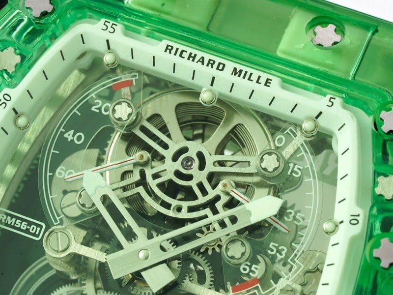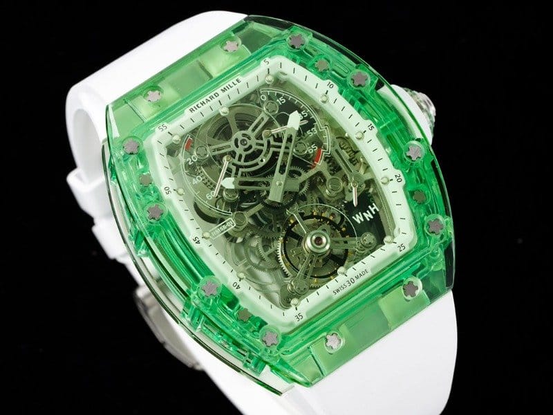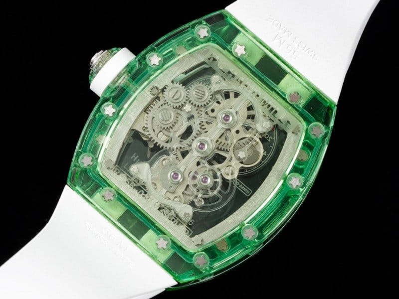 RICHARD MILLE 리차드밀 그린 투명 사파이어 케이스 화이트 러버밴드 RM56-01