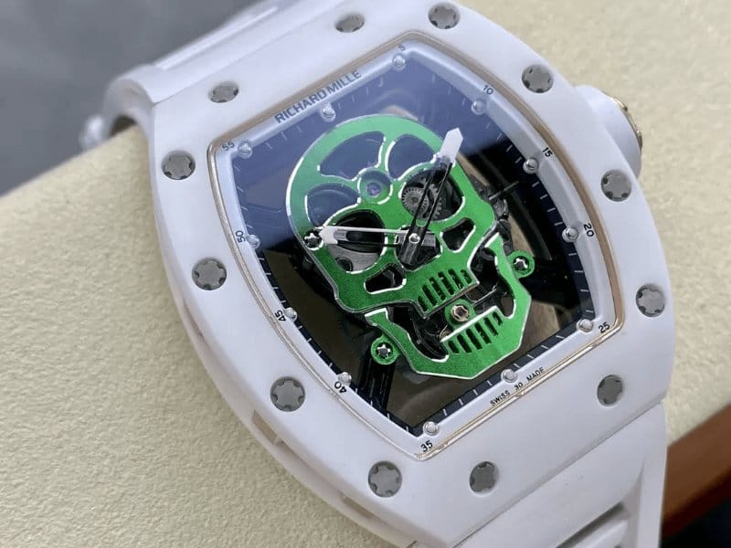 “RICHARD MILLE 리차드밀 화이트 세라믹 스컬 다이얼 RM52-01 레드-그린”의 첫 상품평을 남겨 주세요