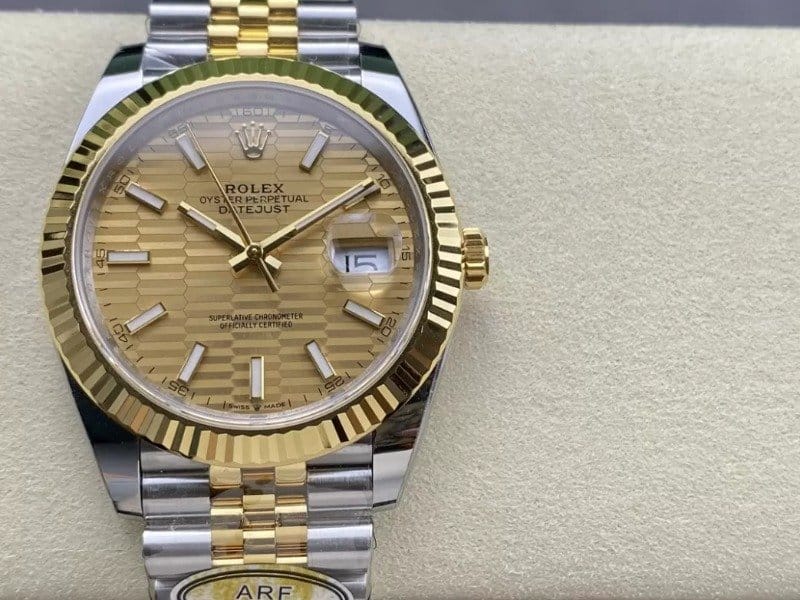 ROLEX 로렉스 데이저스트 YG 텍스처 스틱 옐로우 골드 다이얼 콤비 쥬빌레 41mm 126333-0012