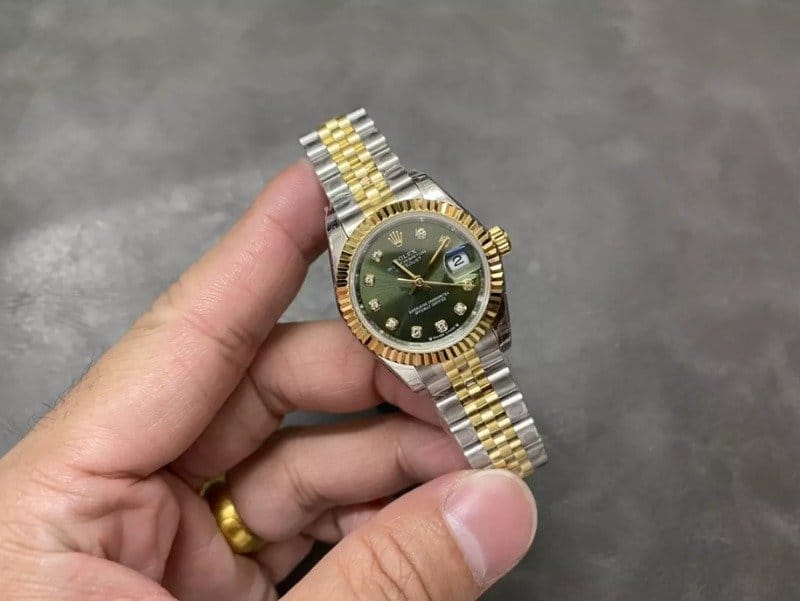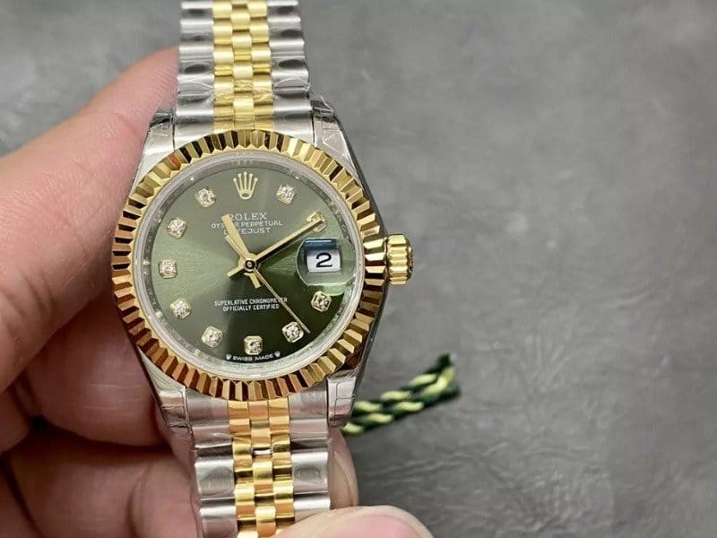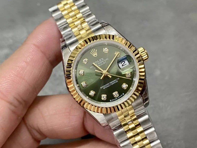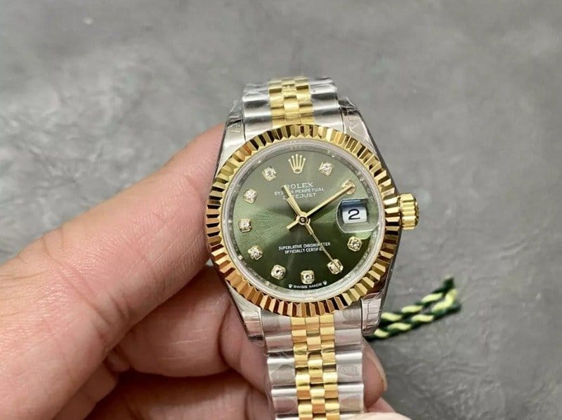 ROLEX 로렉스 레이디 데이저스트 그린 다이얼 10P 다이아 콤비 28mm 279173