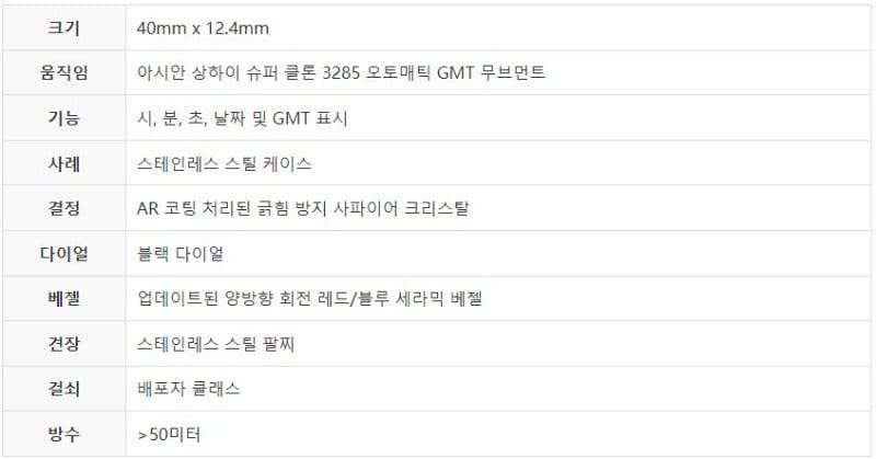 “ROLEX 로렉스 GMT마스터2 호랑이 검판 콤비 40mm 쥬빌레 126713”의 첫 상품평을 남겨 주세요