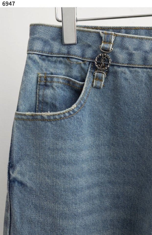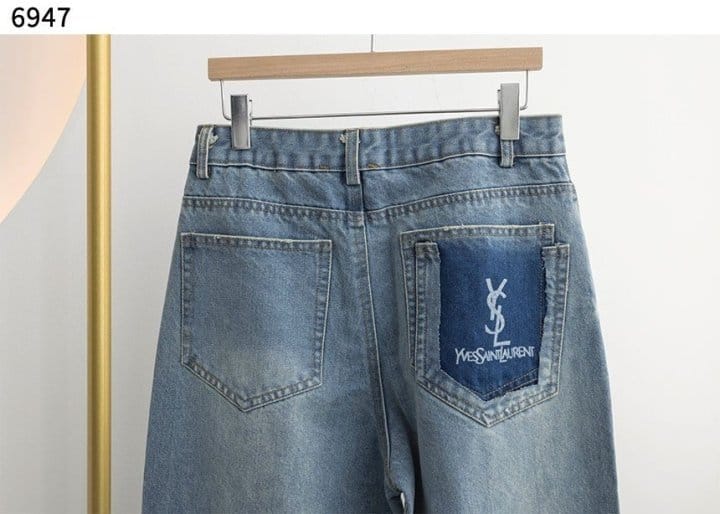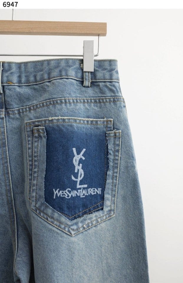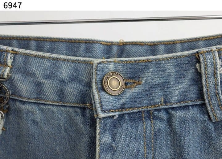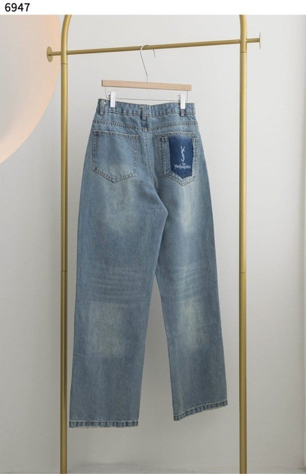 SAINT LAURENT 생로랑 웨이스트 롱 배기 진