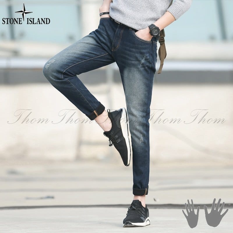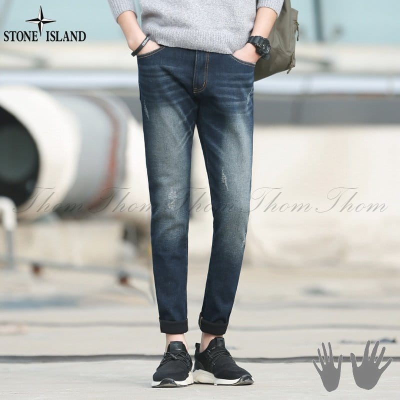 STONE ISLAND 스톤아일랜드 기모 본딩 슬림 데님 팬츠