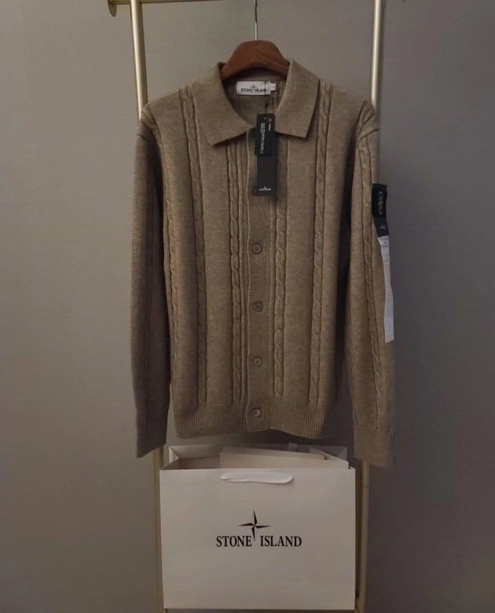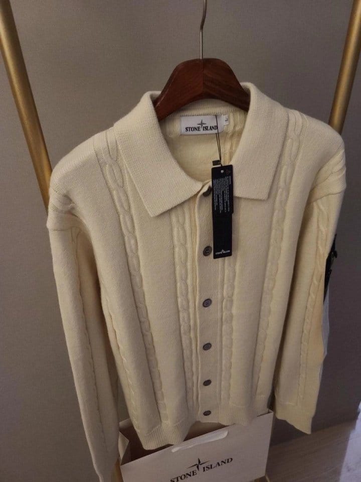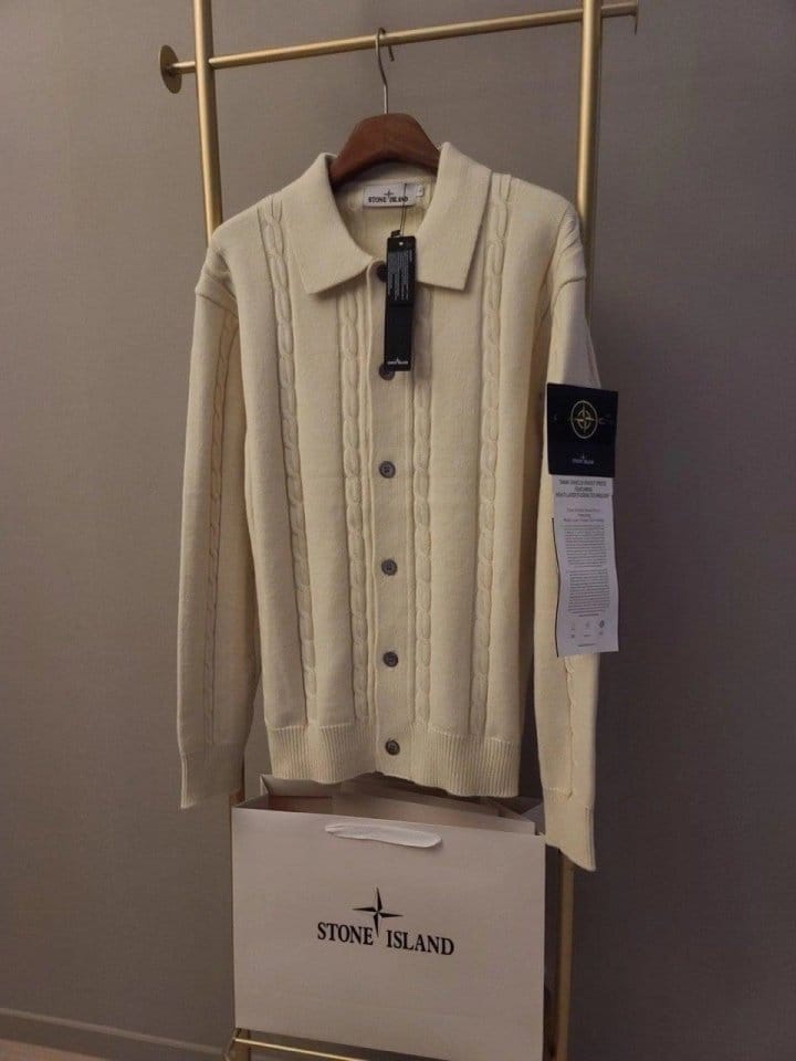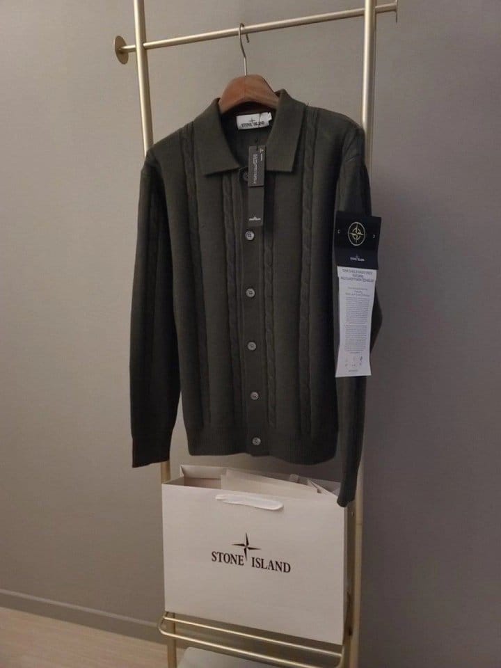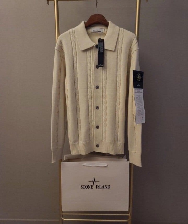 STONE ISLAND 스톤아일랜드 카라 단추 케이블 가디건