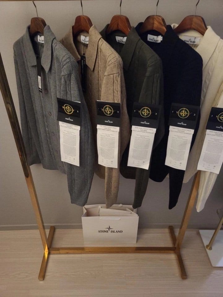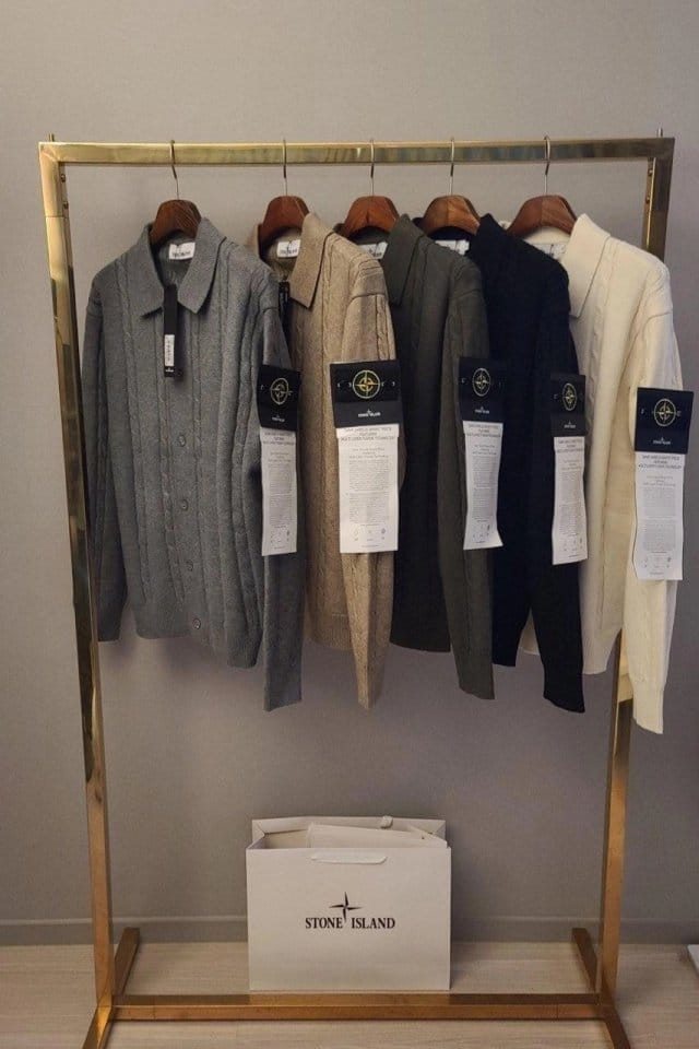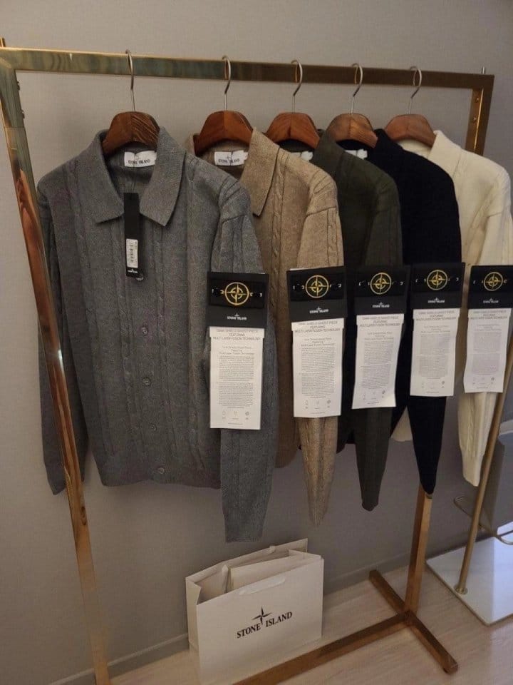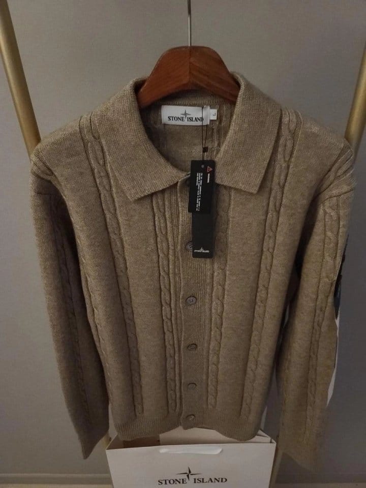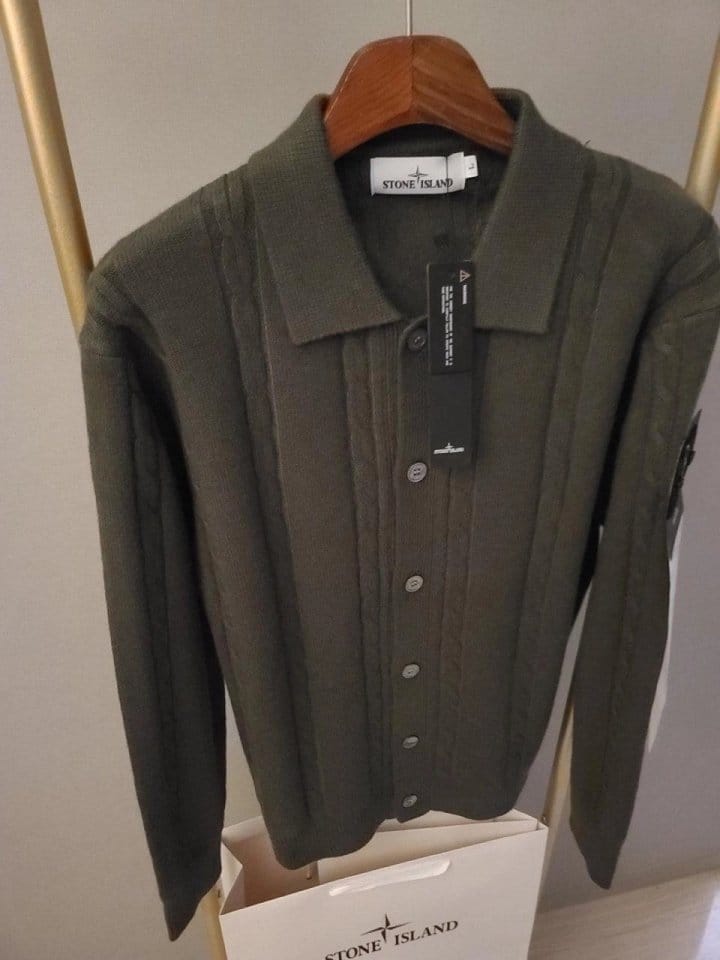 STONE ISLAND 스톤아일랜드 카라 단추 케이블 가디건