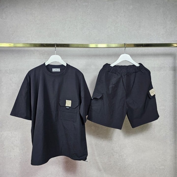 STONE ISLAND 스톤아일랜드 PK 라운드 스트링 티셔츠 &카고 밴딩 팬츠 3COLOR