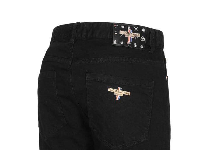 THOM BROWNE 톰브라운 메탈 레더패치 블랙진