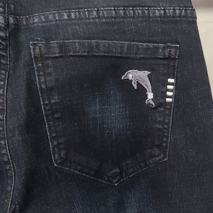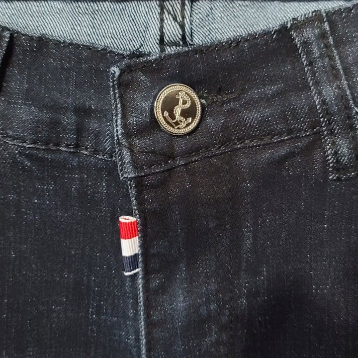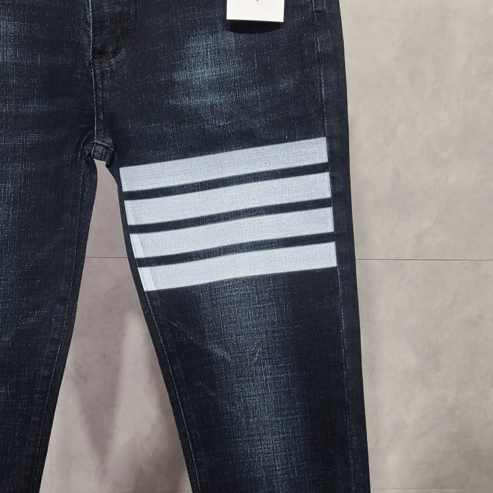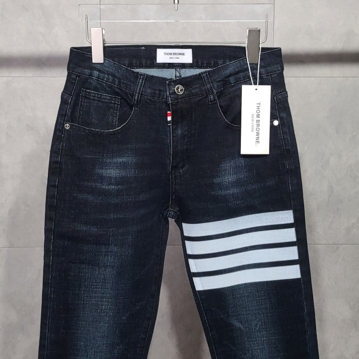THOM BROWNE 톰브라운 사선완장 돌핀 진청 청바지