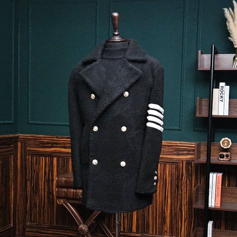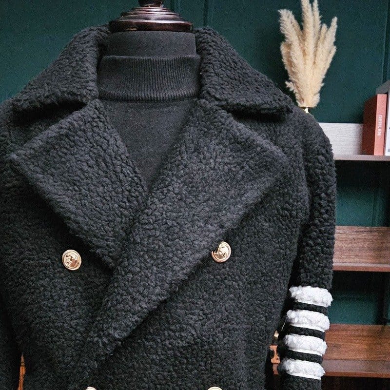 THOM BROWNE 톰브라운 사선완장 양털 더블 자켓