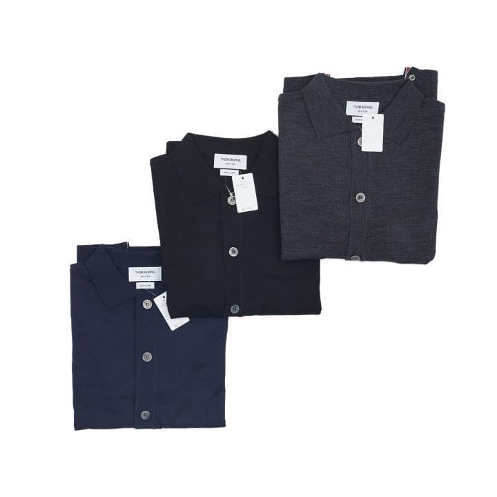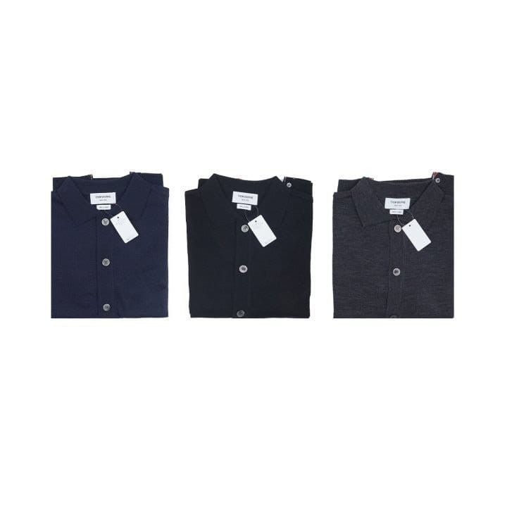 THOM BROWNE 톰브라운 사선 카라 단추 가디건