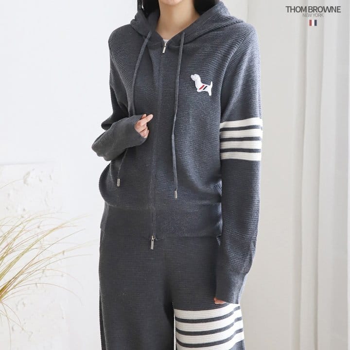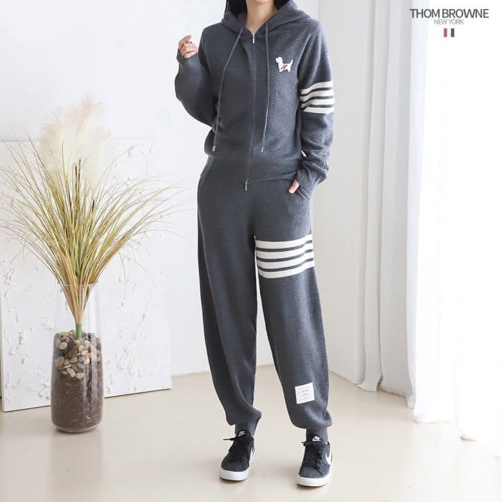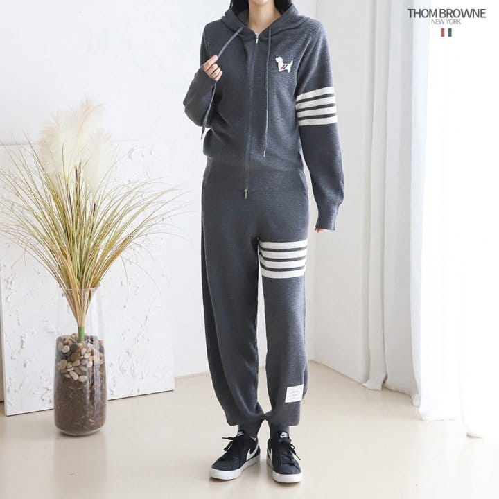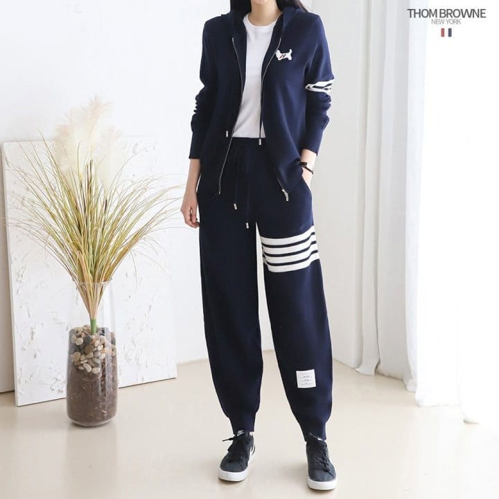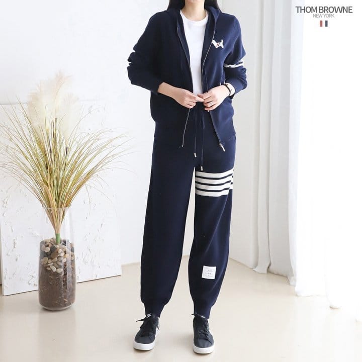 THOM BROWNE 톰브라운 사선 후드집업츄리닝셋트
