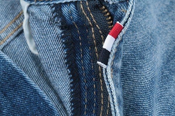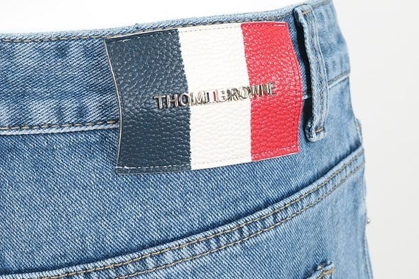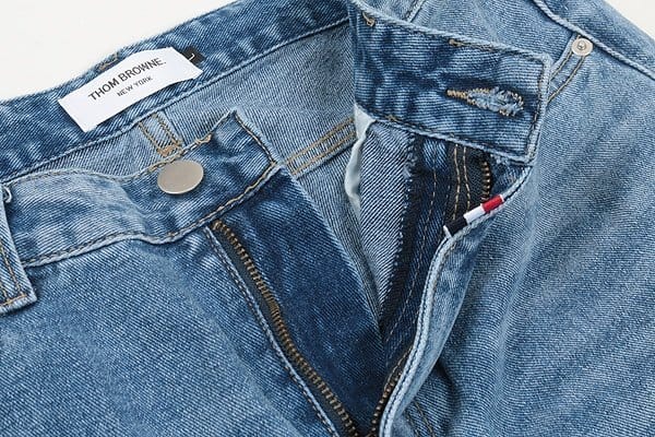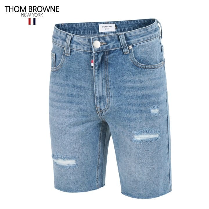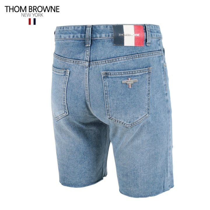 THOM BROWNE 톰브라운 삼색레더 스틸 데미지 데님쇼츠
