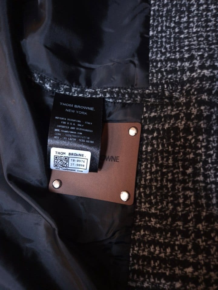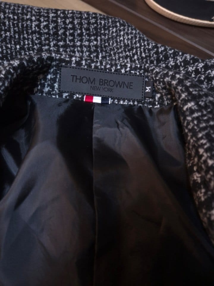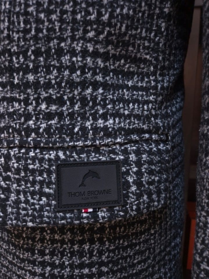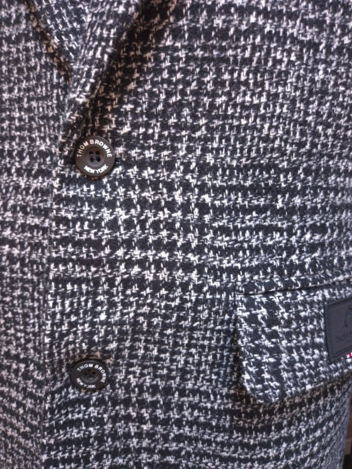 THOM BROWNE 톰브라운 시그니처 다크글렌 가죽패치 뉴 하프 코트